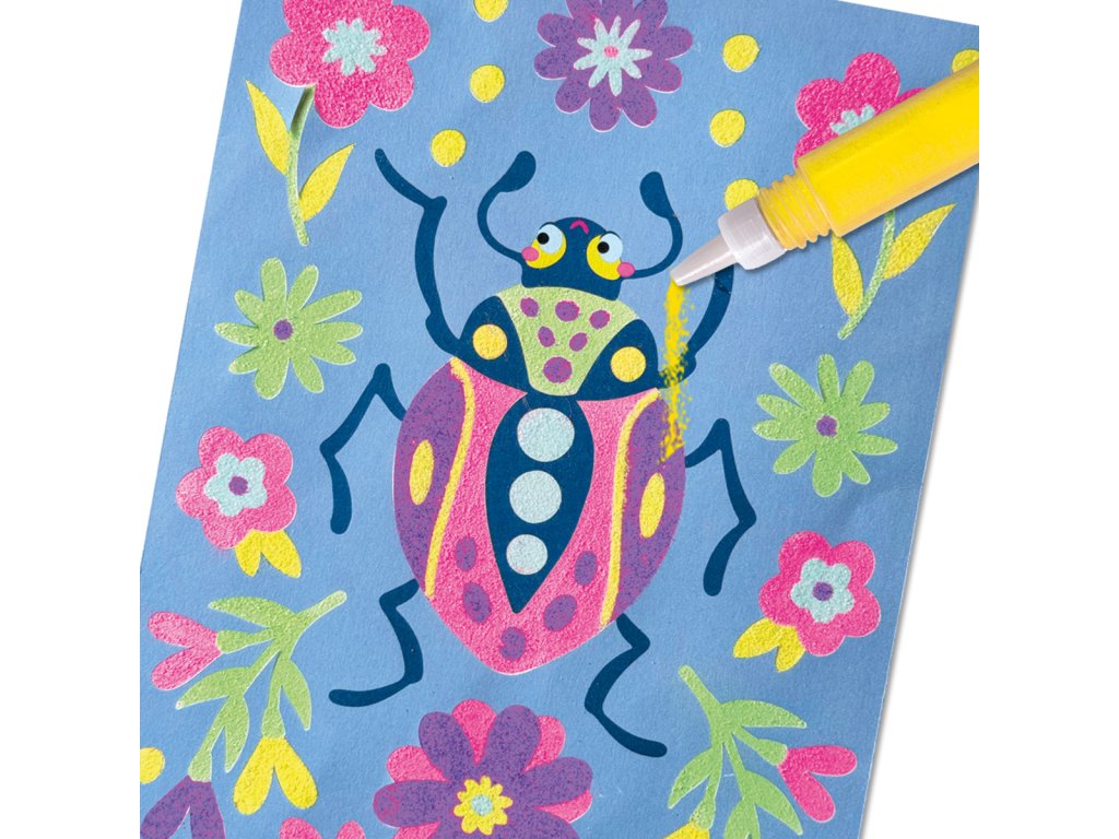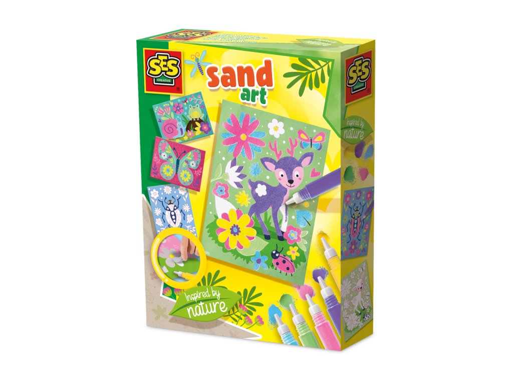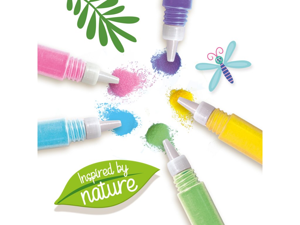 Objevte svou kreativitu se sadou Sand Art a pomocí barevných písků vytvořte umělecká díla s krásnými přírodními motivy. Vytvořte 4 ohromující mistrovská díla pomocí samolepicích karet. Obsahuje 5 zářivých pískových barev: žlutá, světle modrá, světle zelená, růžová a fialová. Pohodlné dávkovací tubičky usnadňují posyp a zdobení. Součástí jsou jednoduché pokyny krok za krokem pro snadné vytváření. Jedna tubička s pískem váží 10 g. Rozměry balení: 20 x 15 x 4 cm. Věk: 3+