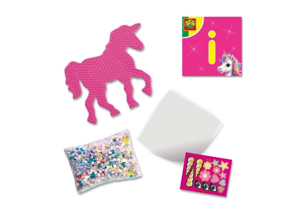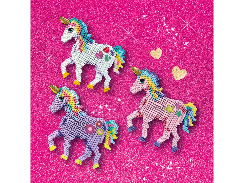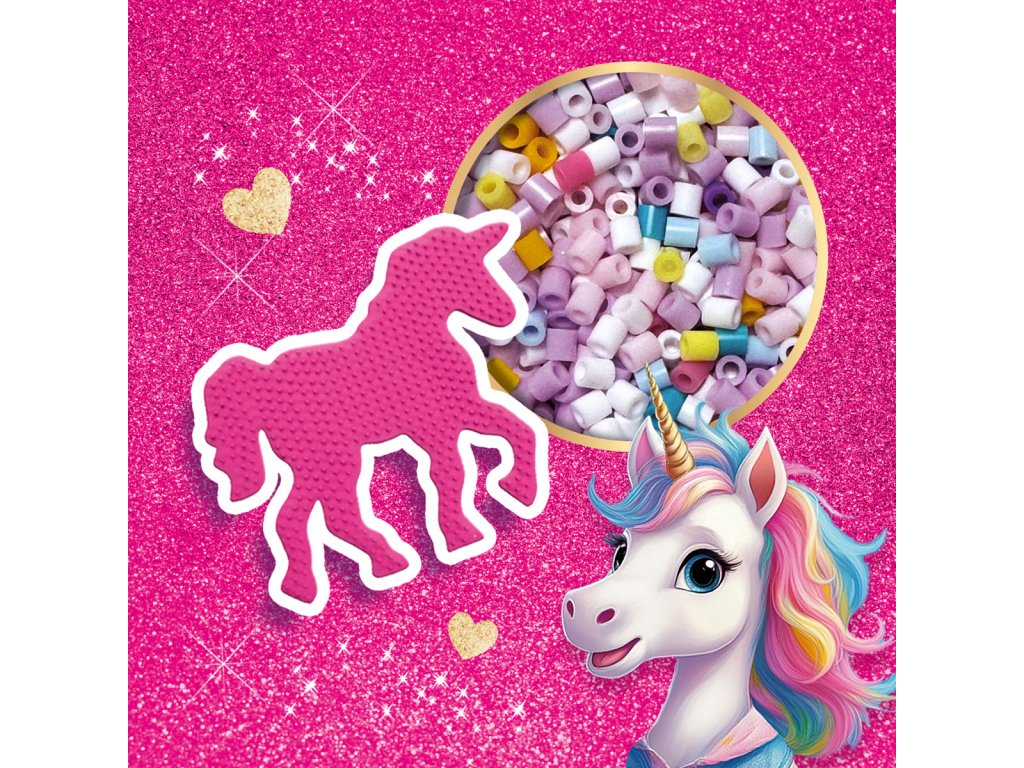 S touto sadou vytvoříte pomocí zažehlovacích korálků tři krásné jednorožce. Obsahuje mix 1800 barevných korálků pro nekonečnou kreativitu. Použijte destičku s korálky a vytvořte si vlastní barevný návrh nebo postupujte podle uvedených příkladů. Přidejte třpytivé samolepky pro zářivý konečný efekt. Ideální pro děti, které milují tvoření a aktivity s tématikou jednorožců. Obsah: destička Pegboard ve tvaru jednorožce, 1800 ks korálků, zažehlovací papír, třpytivé samolepky a návod. Rozměry balení: 20 x 20 x 4 cm. Nevhodné pro děti do 3 let. Věk: 5+