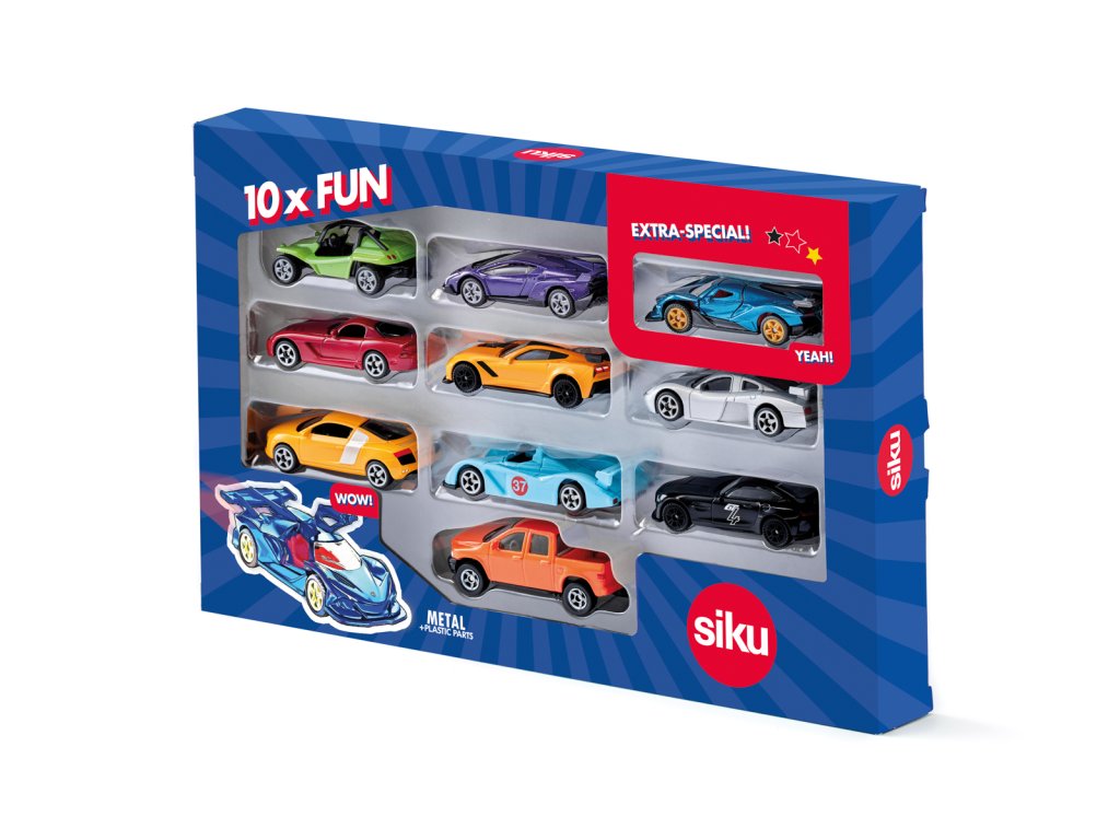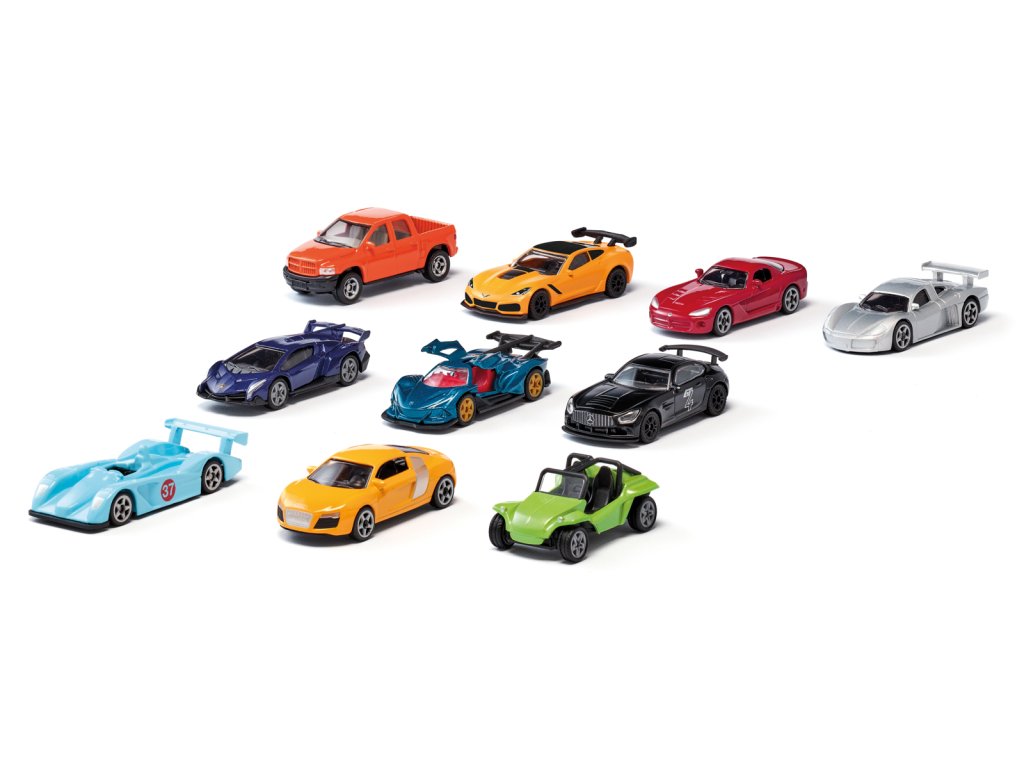 Set 10 sportovních aut. Rozměry: 33x40x21cm. Věk: 3+