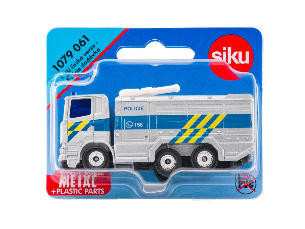 Kovový model policejního nákladního vozu Scania R380 s vodním dělem. Model je vyroben jako věrná kopie policejního vozu v české verzi. Tento model SIKU se vyznačuje realistickými detaily a je vyroben z tlakově litých kovových a plastových komponentů. Model je v měřítku 1:87, má signální světla na střeše a vodní dělo. Rozměry balení: 7,8 x 9,5 x 4 cm. Věk: 3+