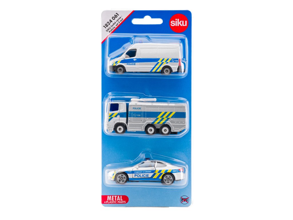 Česká série - 3 policejních vozidel. Sada obsahuje: 1 policejní dodávka, 1 policejní motorka a 1 policejní auto. Rozměr balení: 19,7 x 7,8 x 3,8 cm. Věk: 3+