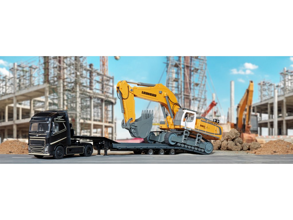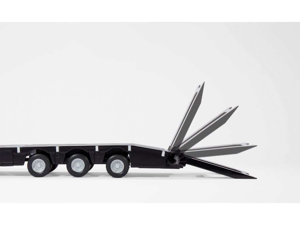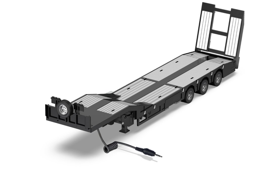 Přeprava zvláště těžkých nákladů, jako jsou stavební stroje, traktory nebo díly mostů, je možná pouze pomocí speciálního podvalníku. Podvalníky EURO od holandského výrobce Nooteboom jsou považovány za nejrobustnější na trhu. Díky hydraulickému řízení se s těžkými speciálními transportéry také mimořádně dobře manévruje. 3-nápravový podvalník od siku také vychází z Eurotraileru od Nooteboom. Návěs má nízkou korbu a vzadu je elektronická rampa pro snadnější nakládání těžkého nákladu. Podvozek podvalníku je kovový, nástavba je plastová. Podpěrné nohy lze ručně vysunout pro větší stabilitu, když stojí. Vzadu jsou čtyři LED diody: dvě červená svícení a dvě směrová světla. Podvalník se připojuje kabelem opatřeným jack konektorem k příslušnému Bluetooth tahači z řady SIKU CONTROL, jako je nákladní automobil nebo traktor. To lze zase velmi jednoduše ovládat pomocí aplikace SIKU CONTROL nebo vhodného modulu dálkového ovládání. Rozměry balení: 45 x 12,5 x 8,9 cm. Věk: 3+
