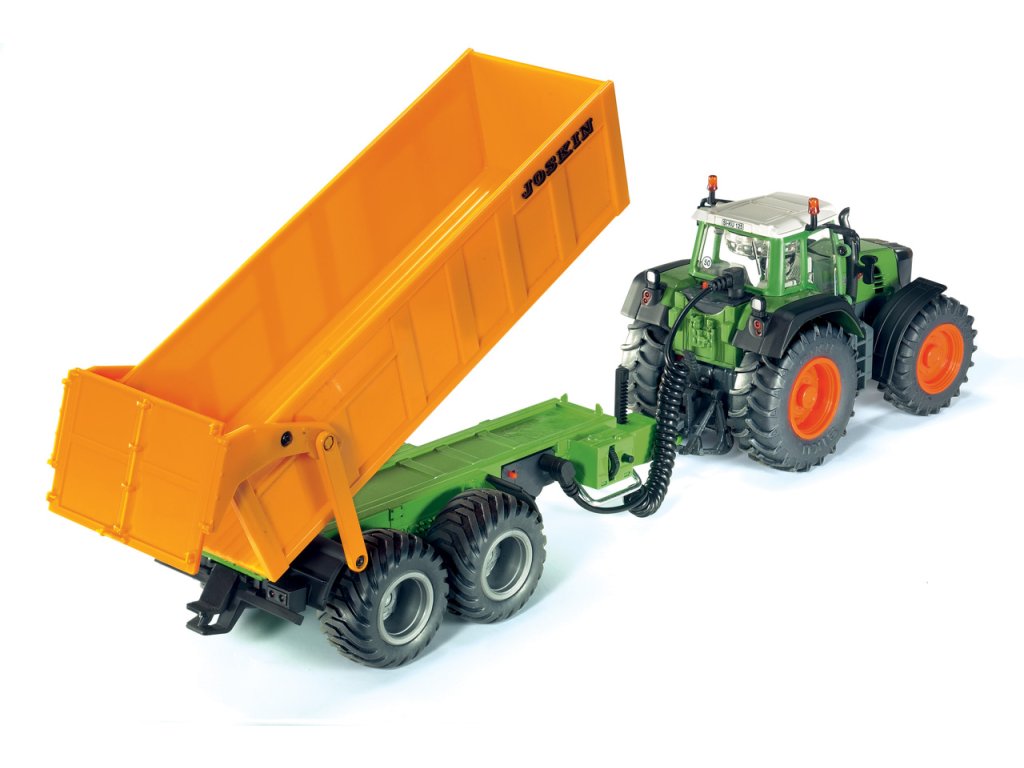 Elektronicky řízený přívěs s tandemovou nápravou s vlastním zdrojem z baterie. Přívěs je k traktoru připojen pomocí datového kabelu ale vzhledem k vlastnímu zdroji ho lze použít i bez ovládacího traktoru. Přívěs se elektronicky sklápí dozadu. K aktivaci této funkce lze použít stávající modul dálkového ovládání. Na zadní části přívěsu vytvářejí červené a oranžové LED diody zadní světla a ukazatele. Díky nezávislému zdroji energie může být přívěs provozován také bez ovládacího traktoru nebo prostřednictvím dálkového ovladače. Na modelu jsou namontovány příslušné spínače, aby bylo možné ovládat naklápění a světla. Měřítko: 1:32. Rozměr: 257 x 96 x 103 mm. Věk: 3+
