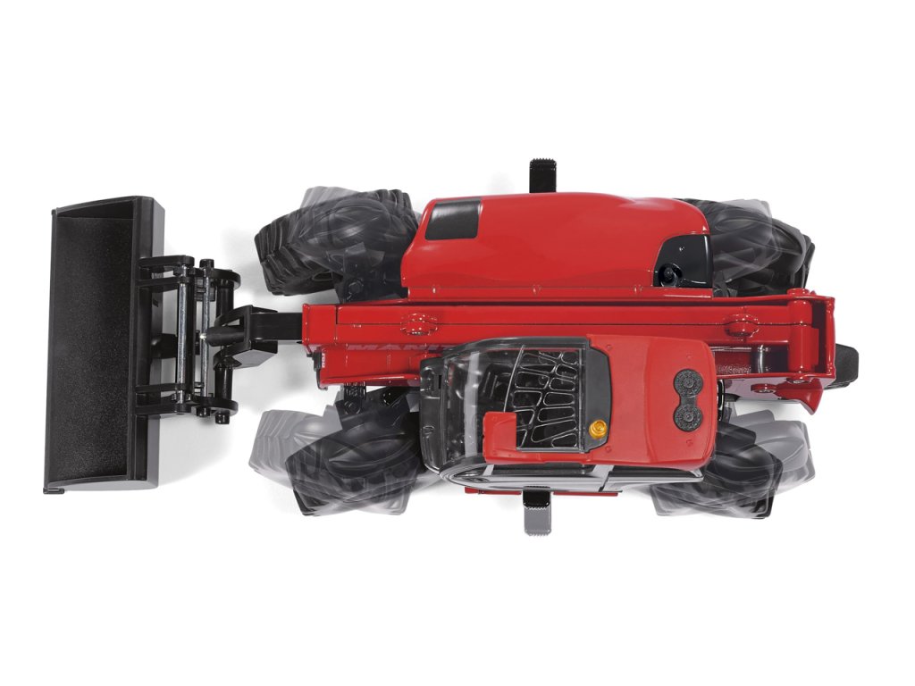Teleskopický nakladač MLT840 v červené barvě od společnosti Manitou je velkým pomocníkem na farmě. Pohyblivé rameno s objemovou lopatkou lze vytáhnout za účelem zatížení sypkého materiálu i na větších přívěsech. Díky pohonu všech kol je model obzvlášť vhodný do terénu. S teleskopickou spojkou se teleskopický nakladač používá také jako traktor. Kovový model v měřítku 1:32. Rozměr: 203 x 90 x 240 mm. Rozměr balení: 25,5 x 9,8 x 13,1 cm. Věk: 3+