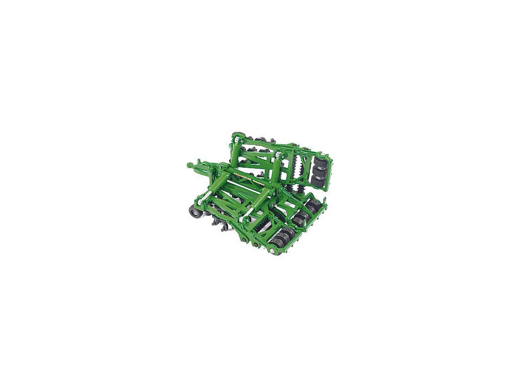 Kovový model zajímavého kloubového traktoru John Deere 9630 s dvojitými koly a víceúčelovými bránami Amazone. Model traktoru je propracován do jemných detailů včetně potisku. Zatáčení je realizováno pomocí kloubu uprostřed traktoru. Připojitelné brány Amazone lze zvednout do přepravní polohy nebo nechat sklopené v pracovní pozici. Všechna kola a válce bran jsou otočné. Model je vyroben z kovu a doplněn plastovými díly. Pneumatiky jsou gumové. Měřítko: 1:87. Rozměr: 177 x 86 x 43 mm. Rozměr balení: 22,6 x 8 x 7,5 cm. Věk: 3+