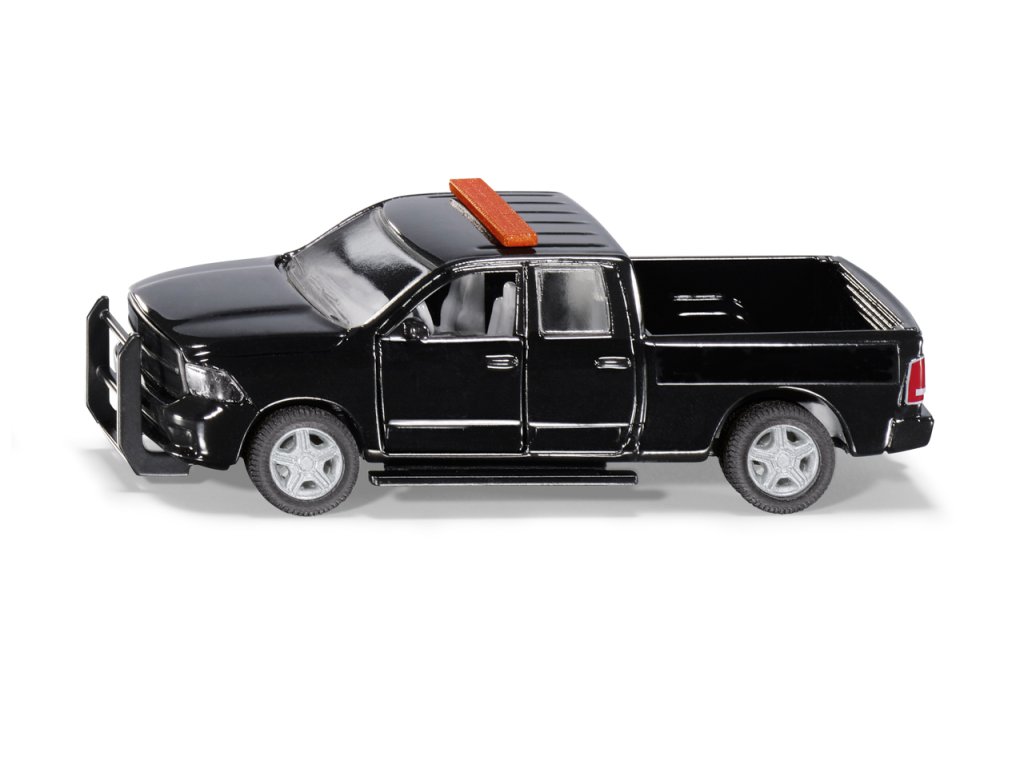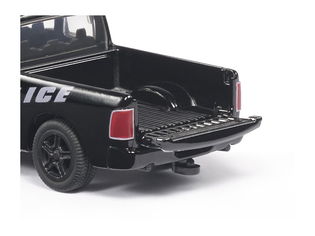 RAM 1500 US police – světoznámá značka pro masivní a energický pick-up s 8-válcovým jádrem. V měřítku 1:50 demonstruje tento pick-up svou skutečnou nádheru a funkčnost. Kapotu, dveře a víko zavazadlového prostoru lze otevřít. Nejnovější inovace od firmy SIKU, jsou v kolech. Poprvé jsou odnímatelné a umožňují opětovné uvedení do provozu. Policejní verze je vyzdobena typickým kulatým světlem a nápadným potiskem. Rozměr: 121 x 43 x 42 mm. Rozměr balení: 15,5 x 6,5 x 7,5 cm. Věk: 3+