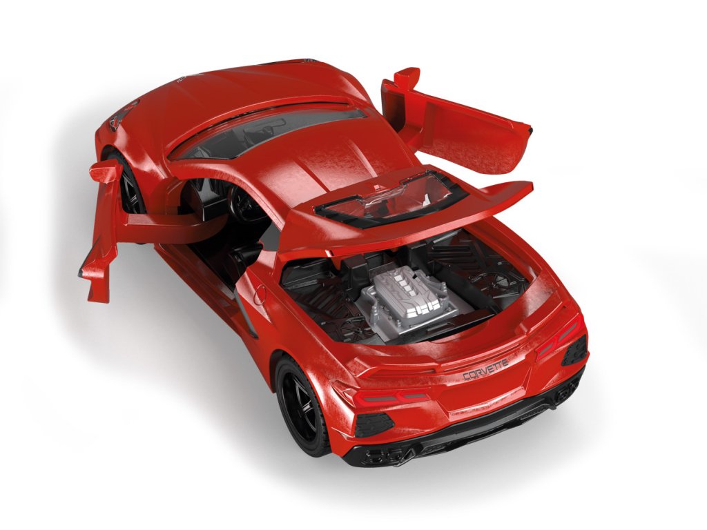 V modelu C8 Stingray vytváří ikona amerického sportovního vozu Corvette skutečnou revoluci. Poprvé v téměř 70leté tradici vozidla již není motor umístěn vpředu, ale místo toho je umístěn uprostřed vozidla. Tím se sníží a přemístí těžiště – úprava, která přímo ovlivňuje ovladatelnost vozidla: kupé se tak stává výrazně agilnějším. Údaje o nadprůměrném výkonu Corvette byly vždy působivé. Jeho motor V8 o výkonu 500 koní zrychlí z 0 na 100 km/h za zhruba tři sekundy a ručička rychloměru se vyšplhá na neuvěřitelných 312 km/h. U modelu siku se dveře otevírají na obě strany a otevírá se i kapota. To poskytuje jasný pohled na detailní motor, který je instalován přímo za sedadly. Kola vozidla lze měnit. Rozměry balení: 17,5 x 7,5 x 6,5 cm. Věk: 3+
