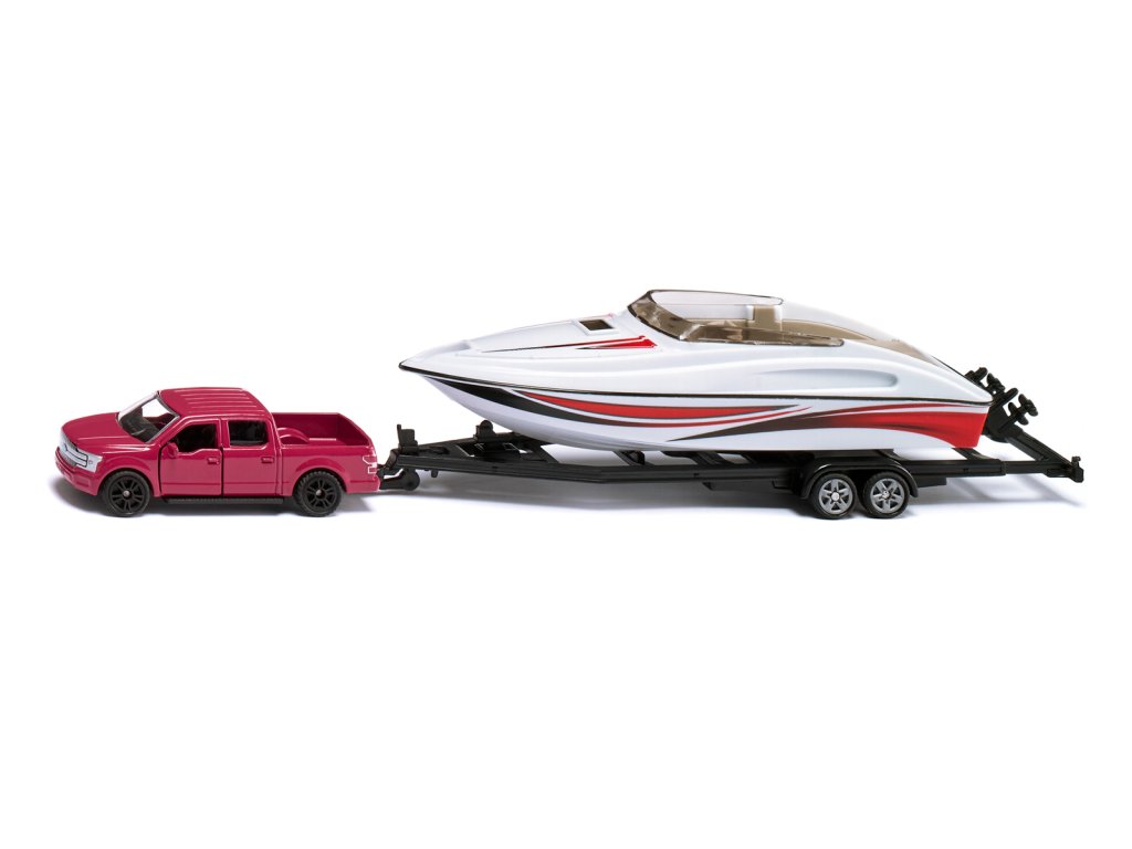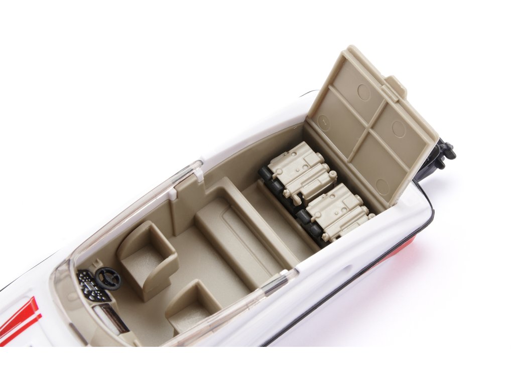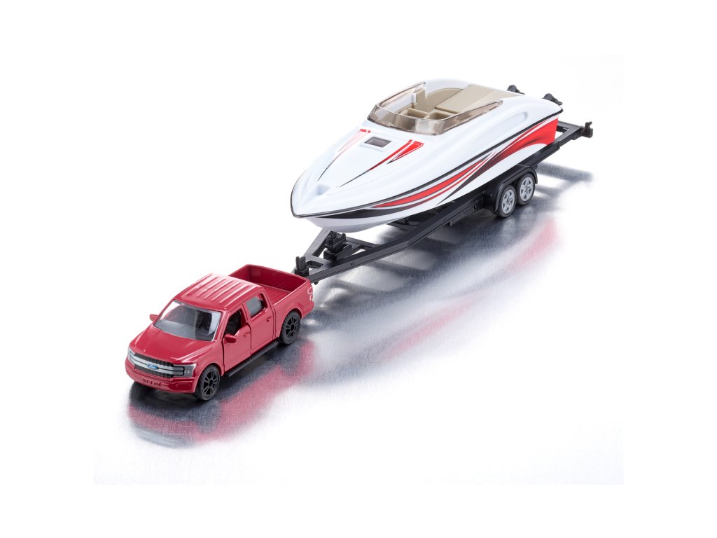 Zažijte vzrušení z dobrodružství na vodě i na silnici s modelem SIKU Ford F150 s přívěsem a člunem v měřítku 1:50. Tento model spojuje sílu a flexibilitu amerického pick-upu Ford F150 s praktičností přívěsu a elegantního člunu, čímž vytváří dokonalý nástroj pro všechny, kdo milují vodní sportovní aktivity a outdoorová dobrodružství. Model je navržen tak, aby byl nejen krásně detailní, ale i interaktivní, což poskytuje sběratelům i hráčům autentický zážitek. Ford F150 je vyroben z kvalitního kovu a plastových detailů, které představují charakteristické rysy skutečného vozu – od robustní karoserie, přes realistická kola až po detaily jako jsou světla, maska a interiér. Tento model je vybaven funkčním přívěsem, který bezpečně přepraví sportovní člun, jenž je součástí setu. Člun je rovněž velmi detailně zpracován, a to včetně autentických prvků, jako jsou sedačky, motor a další detaily, které zvýrazňují autentičnost celého setu. Baleno v krabičce. Rozměry balení: 5,1 x 34 x 9,7 cm. Věk: 3+