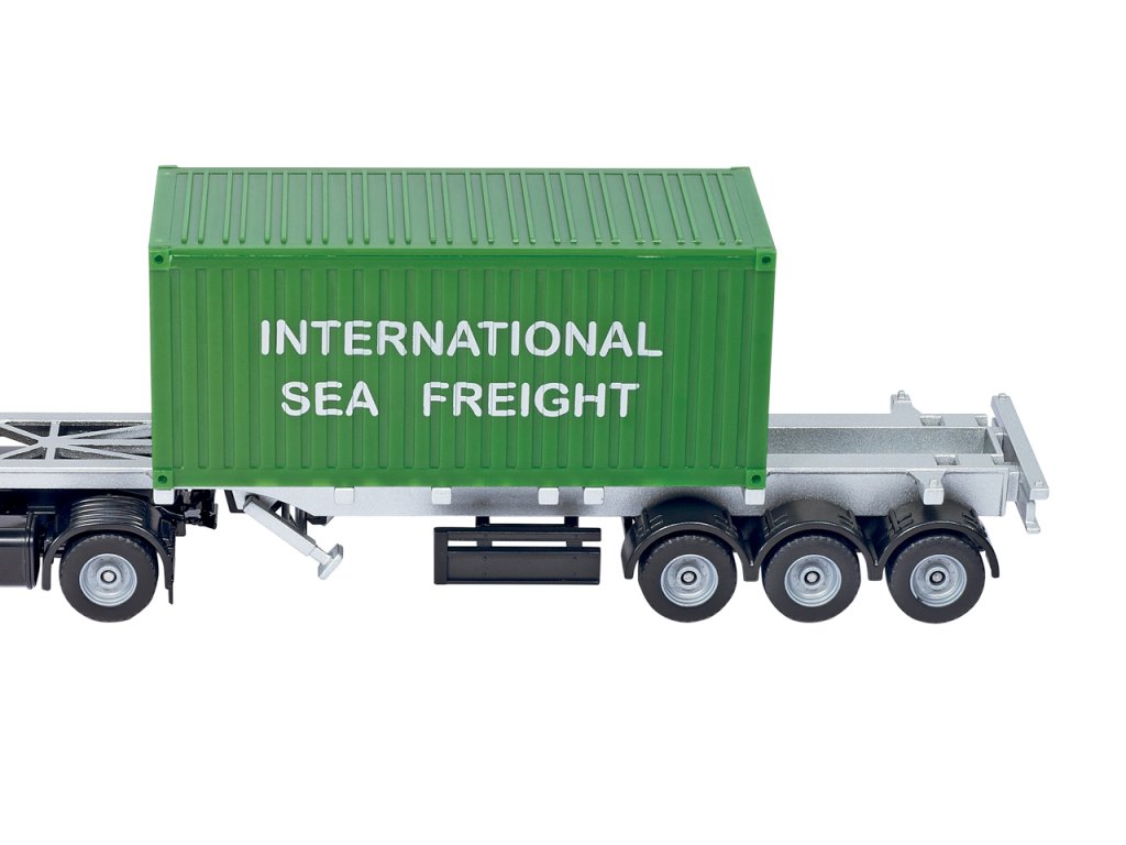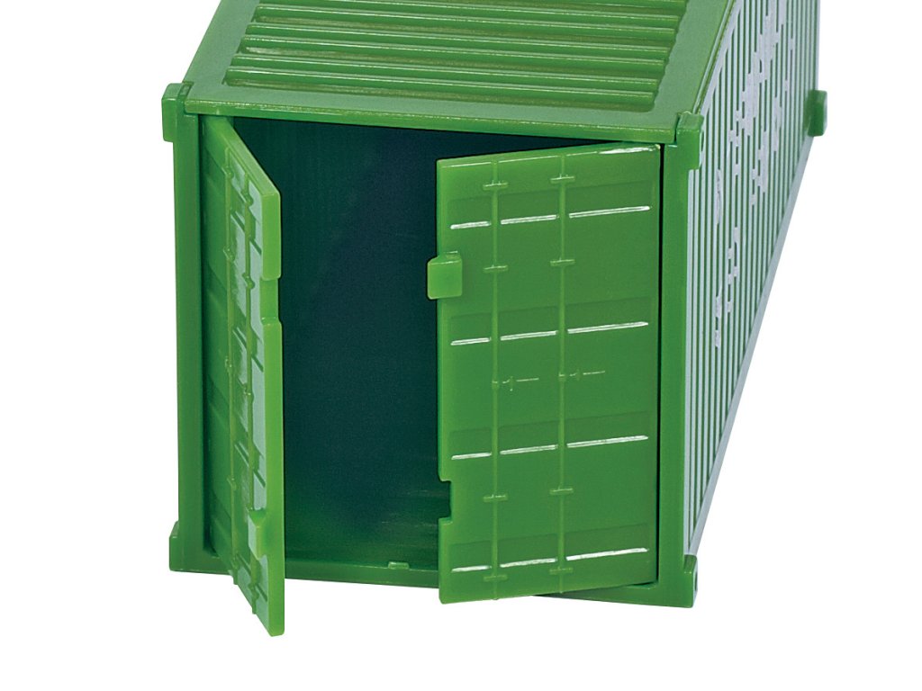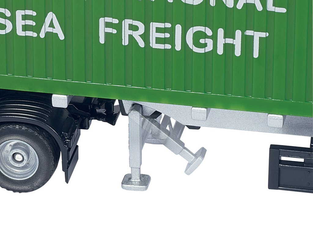 Náklaďák s kontejnerem je detailně propracovaná kopie v měřítku 1:50. Výrobky všeho druhu jsou přepravovány po celém světě pomocí přepravných kontejnerů. Po silnici jsou tyto kontejnery přepravovány pomocí nákladních aut s návěsy. Pro Váš SIKU WORLD je dokonalou novinkou tento Mercedes – Actros, v kombinaci se 2 kontejnery. Délka návěsu je variabilní a může být modifikována podle toho, zda převáží jeden či dva kontejnery. Pokud bude přepravovat pouze jeden kontejner, je možné zadní část návěsu zasunout tak, že bude náklad umístěn ve středu návěsu, pro optimální rozložení hmotnosti. Kontejnery jsou vybaveny pohyblivými dveřmi, díky se pohodlně nakládají a vykládají. Rozměr: 317 x 59 x 8 mm. Rozměr balení: 36 x 7,2 x 11,5 cm. Věk: 3+