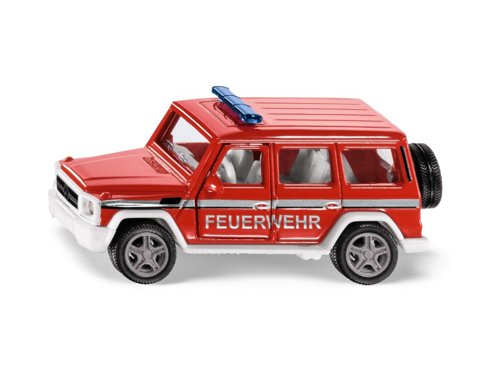 SIKU Super - požární auto. K nehodě v plné síle! Originální terénní vozidlo žije v modelu Mercedes G i po více než 40 letech od jeho uvedení na trh.Varianta AMG G65, která má motory V12 bi-turbo a 630 HP, je obzvláště silná. Auto je nepřehlédnutelné i s vypnutým modrým osvětlením na střeše. Dokonce i v těžkém terénu jsou velitelé hasičů rychle na místě. U miniatury v měřítku 1:50 lze otevřít přední a zadní dveře a navíc je možné vyměnit všechny čtyři kola. Požární auto dokáže vytahovat těžké náklady. Věk: 3+.