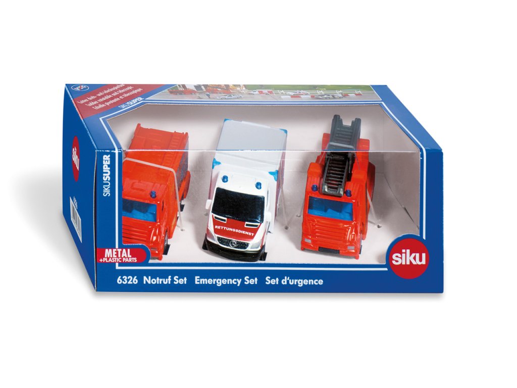 SIKU Super záchranářská vozidla jsou v případě nouze vždy po ruce. Po přijmutí hovoru na tísňovou linku 112 je každá minuta drahocenná. Díky této skvělé sadě je řídící centrum v dětském pokoji ideálně vybaveno pro záchranu života, první pomoc a hašení požáru. Žebřík na hasičském autě lze zvednout, vysunout a otočit. Rozměr balení: 17 x 7 x 10 cm. Věk: 3+