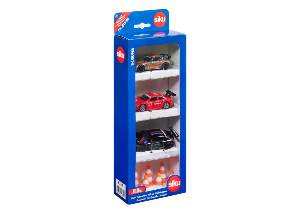 Rychlost je trumf – alespoň s novou dárkovou sadou „Race“ od siku, protože trojice Mercedes-AMG GT4, Audi RS 5 Racing a BMW M4 Racing poskytuje fanouškům motoristických závodů skutečný pocit radosti z rychlosti! Tato tři vozidla pocházejí z různých závodních sérií a stejně jako originály má každé velký zadní spoiler, který je u závodních vozidel povinný. Také sportovní ráfky s gumovými pneumatikami jsou samozřejmě součástí standardní výbavy každého speedsteru. A také z hlediska designu jsou tři modely na hraní se svými prototypy v plné velikosti: Mercedes přichází v originálním speciálním laku AMG v matné šedé s oranžovými detaily. Audi září ve své známé červené RS a BMW zaujme vkusnou matnou černou s typickými M závodními pruhy. Aby byla tři závodní vozidla vyslána na asfalt správným způsobem, obsahuje sada také šest oranžovo-bílých kuželů, které lze použít k vyznačení závodní dráhy. Rozměry balení: 29,6 x 11 x 4,8 cm. Věk: 3+