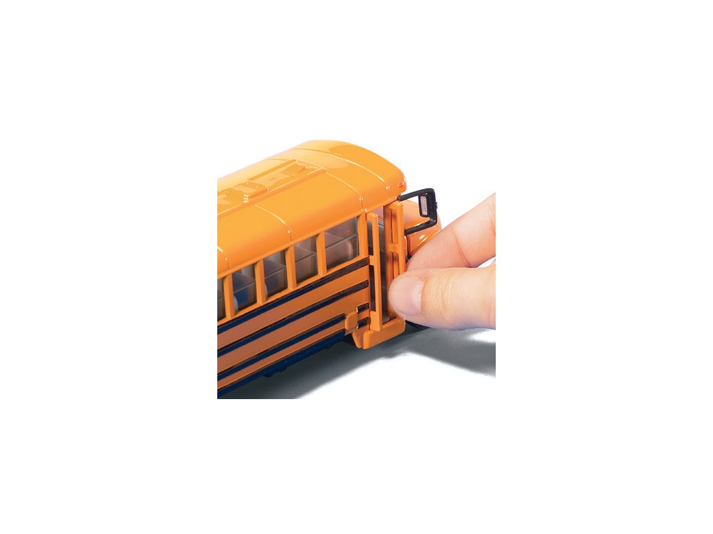 Kvalitní kovový SIKU model amerického školního autobusu s otevíracími předními i zadními dveřmi a kapotou. Rozměry: 19,7 x 6,0 x 5,8 cm