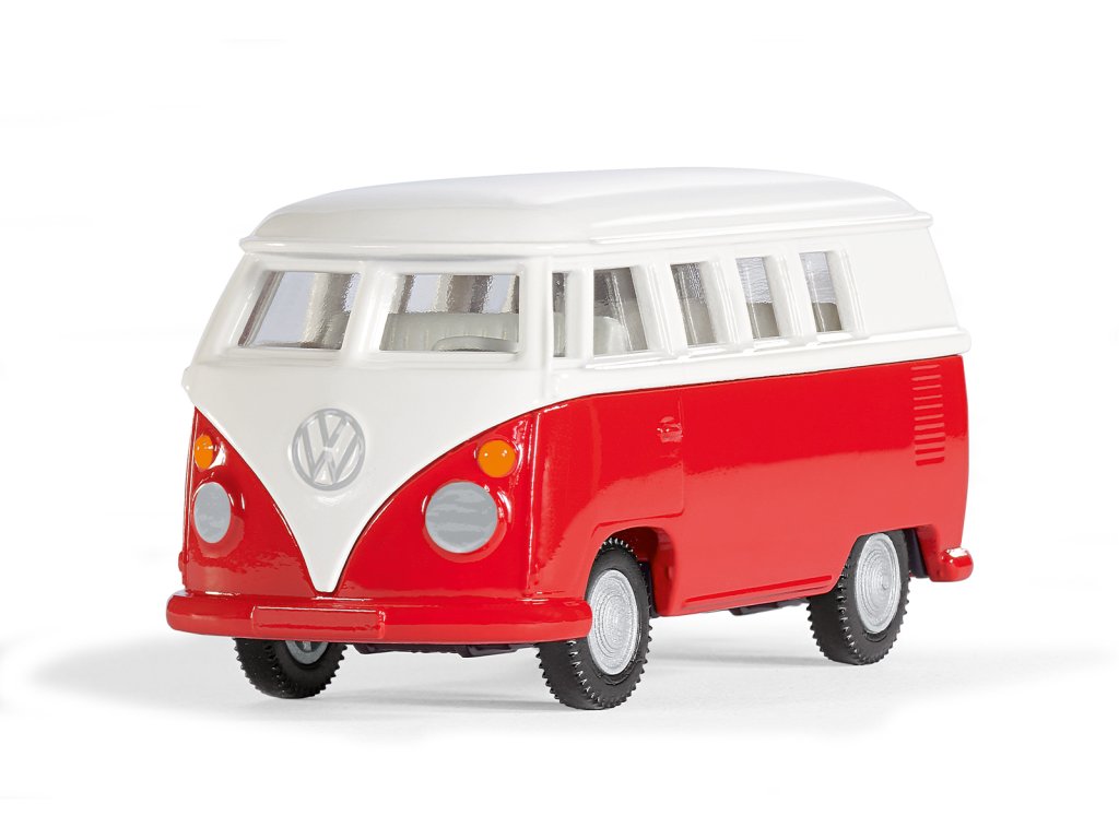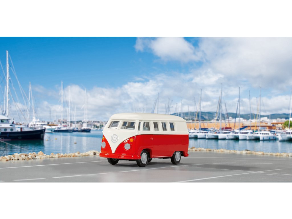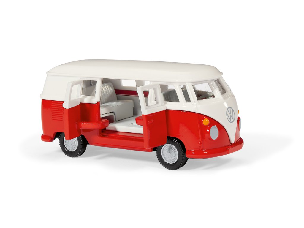 T1 od Volkswagenu je víc než jen vozidlo – je to legenda! Příběh úspěchu německého minibusu začal v 50. letech 20. století a jeho němečtí fanoušci mu s láskou říkají „Bulli“. Byl symbolem německého hospodářského zázraku a v USA byl kultovním znakem hippies. Díky svému zaoblenému designu, lesklému laku a chromovaným nárazníkům svým vintage charakterem dodnes okouzluje značnou základnu fanoušků. Jako model siku je kultovní minibus VW T1 samozřejmě k dispozici v nezaměnitelné bílo/červené barevné kombinaci s věrnými originálními koly. Karoserie a dveře jsou kovové, nástavba plastová. Dvoje dveře lze otevřít na prav é straně vozidla. Jeho závěs pro přívěs umožňuje T1 kombinovat s mnoha přívěsy. Rozměry balení: 17,5 x 7,5 x 6,5 cm. Věk: 3+