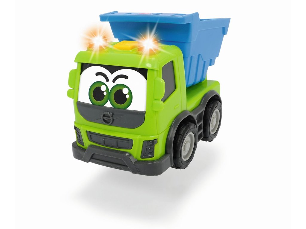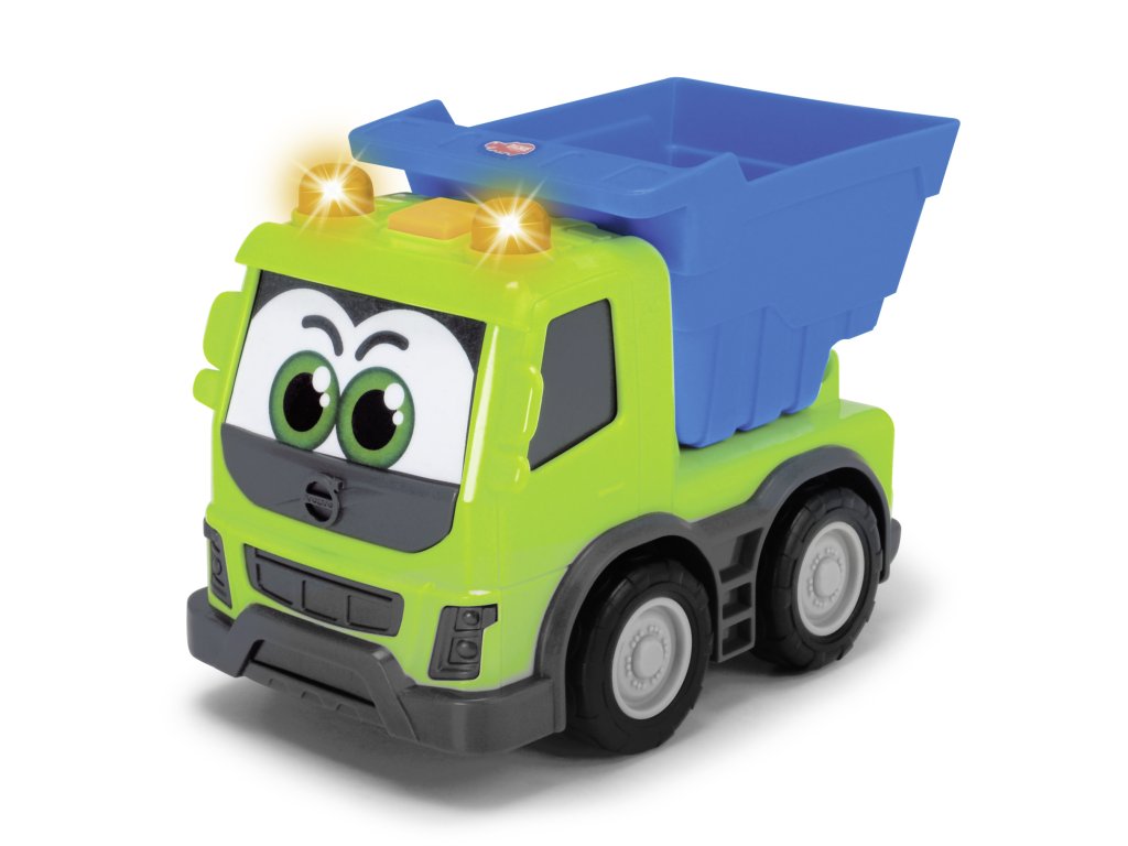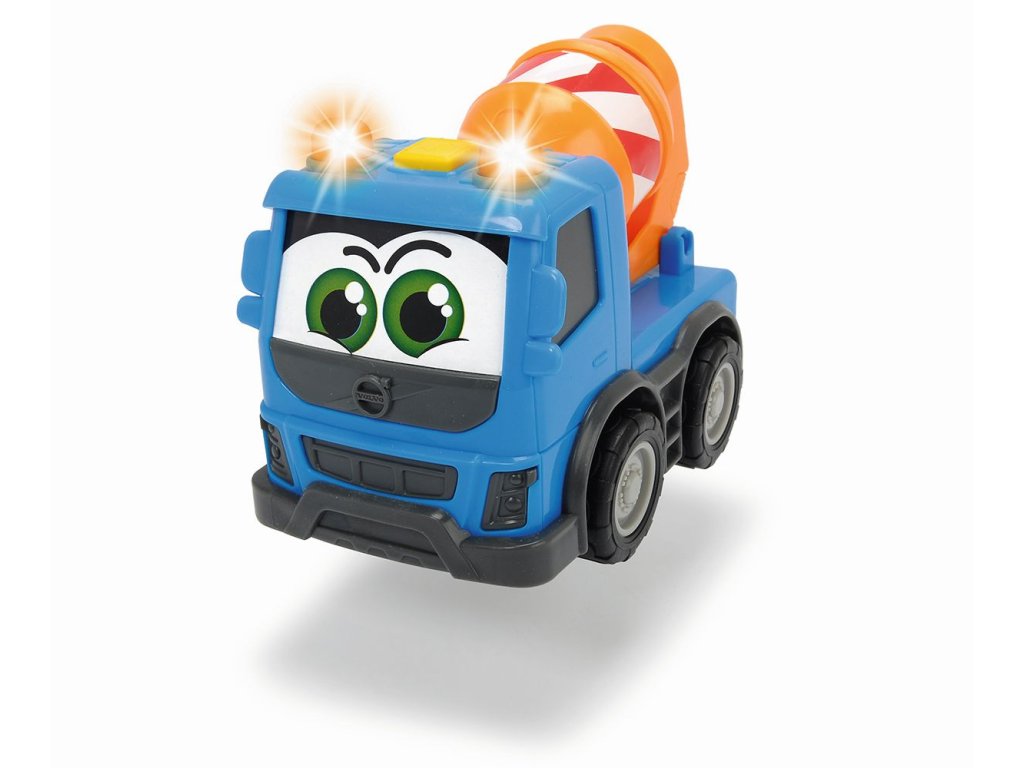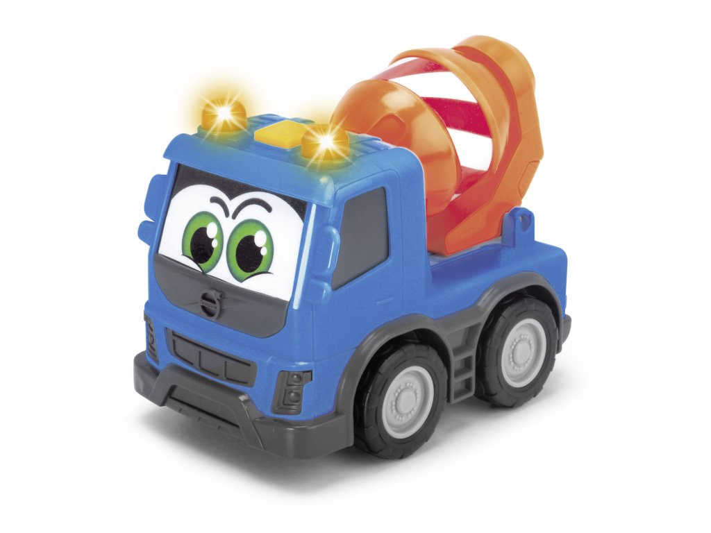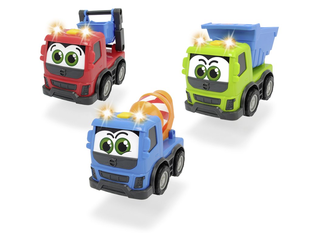 Veselé pracovní autíčko pro nejmenší, na volnoběh. Namalovaná očíčka, zvukový a světelný efekt. 3 druhy - sklápěčka, míchačka, nákladní auto. Délka 13 cm.