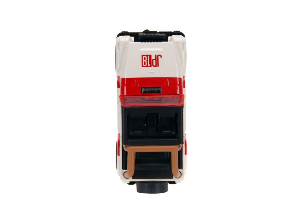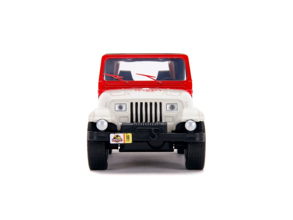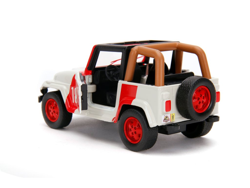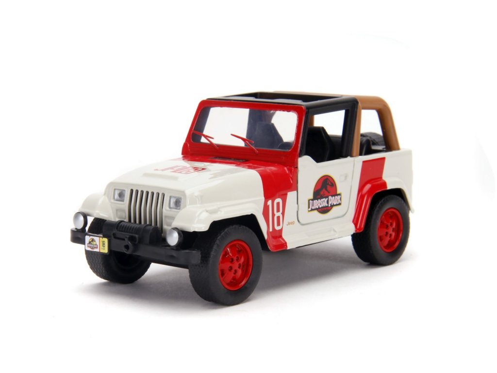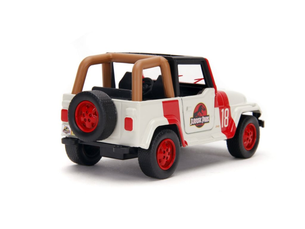 Kovový model auta Jeep Wrangler Jurassic World 1:32, na volnoběh, otevírací dveře. Velikost 10,2 cm. Displej obsahuje 6 ks.