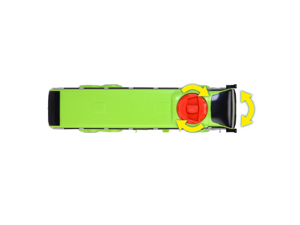 Autobus MAN Flixbus na volnoběh, otevírací dveře, otočením kolečka na střeše se ovládají přední kola. Délka 26,5 cm