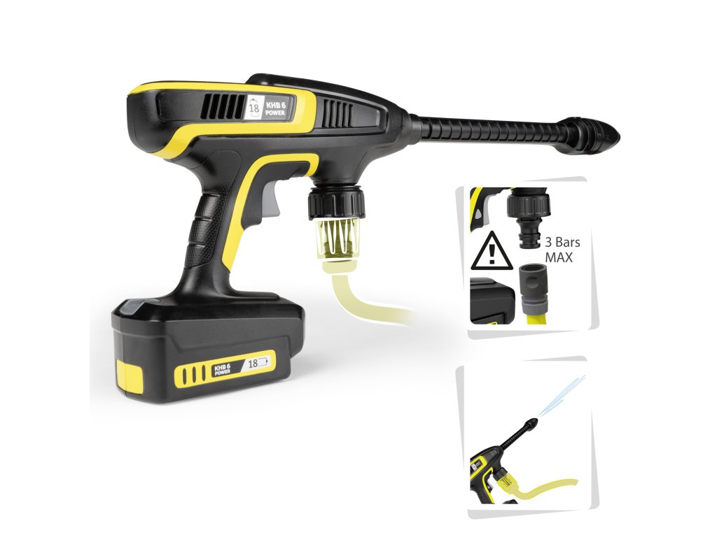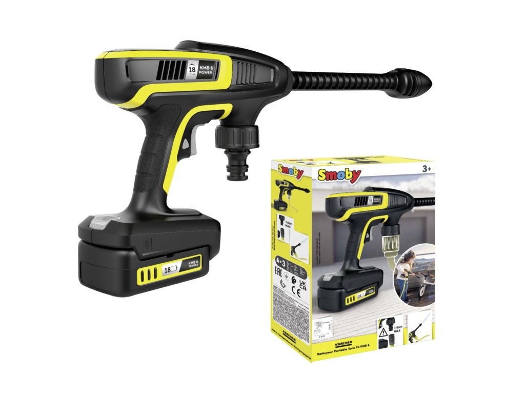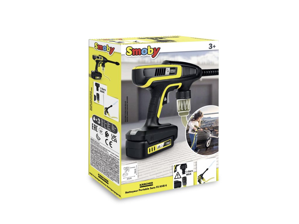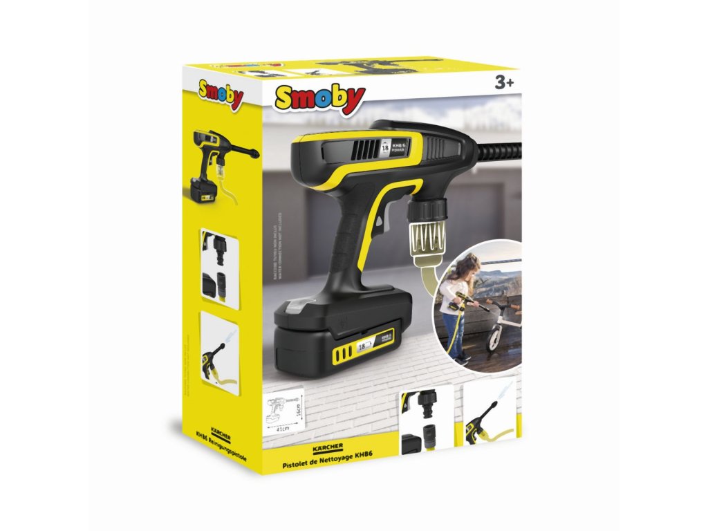 Vysokotlaká čistící pistole je detailní replikou velkého Kärcher originálu KHB 6, vybavená přípojkou pro běžnou zahradní hadici pro funkci vodního paprsku vhodnou pro děti. Rozměry produktu (DxŠxV): 41,8 x 5,4 x 16 cm.