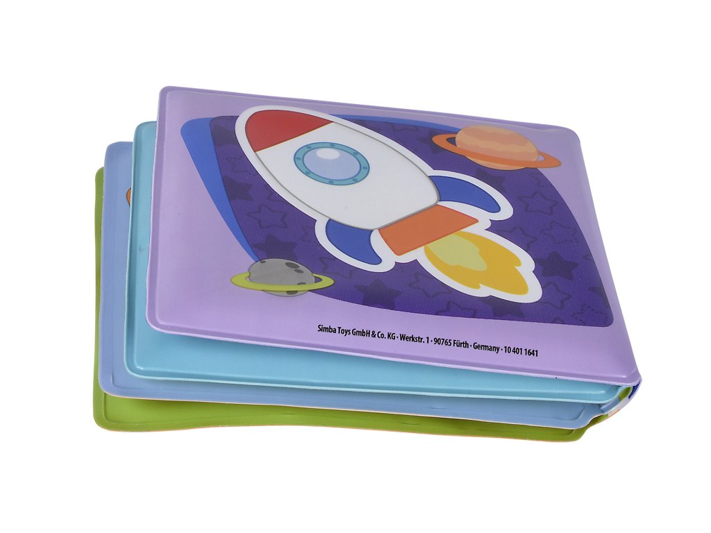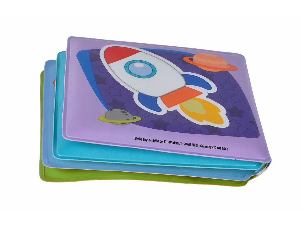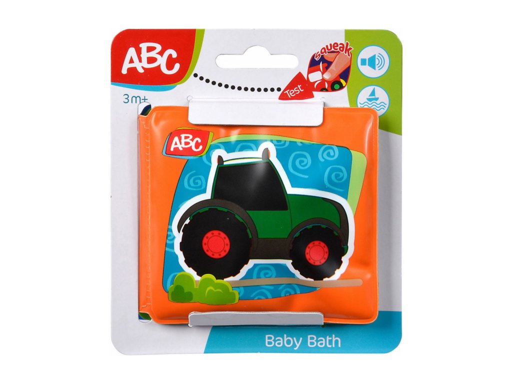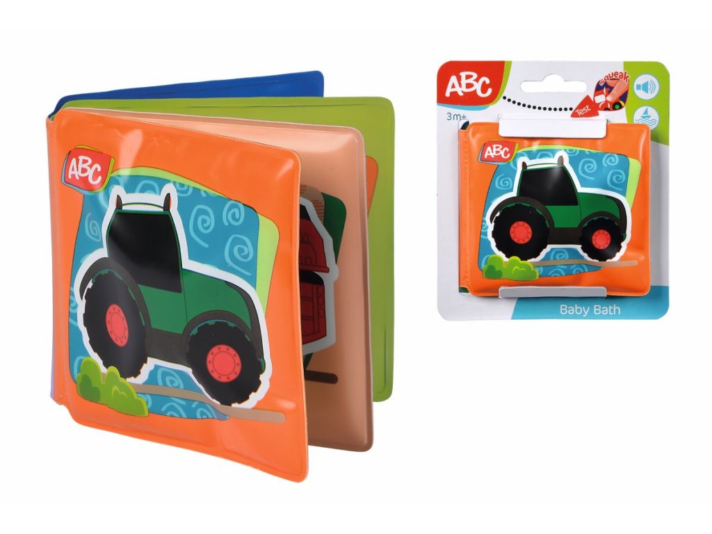 Omyvatelná knížka pro nejmenší s "pískátkem" na přední straně. Má celkem 8 stran s obrázky dopravních prostředků. Rozměr zavřené knížky: 10x10cm.