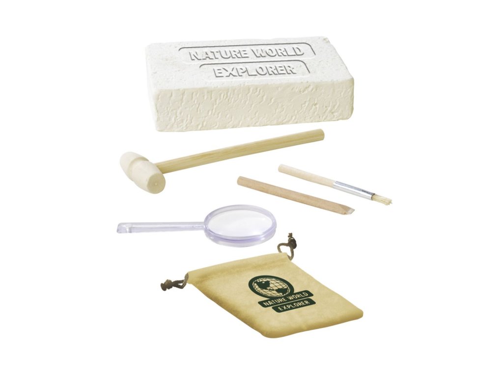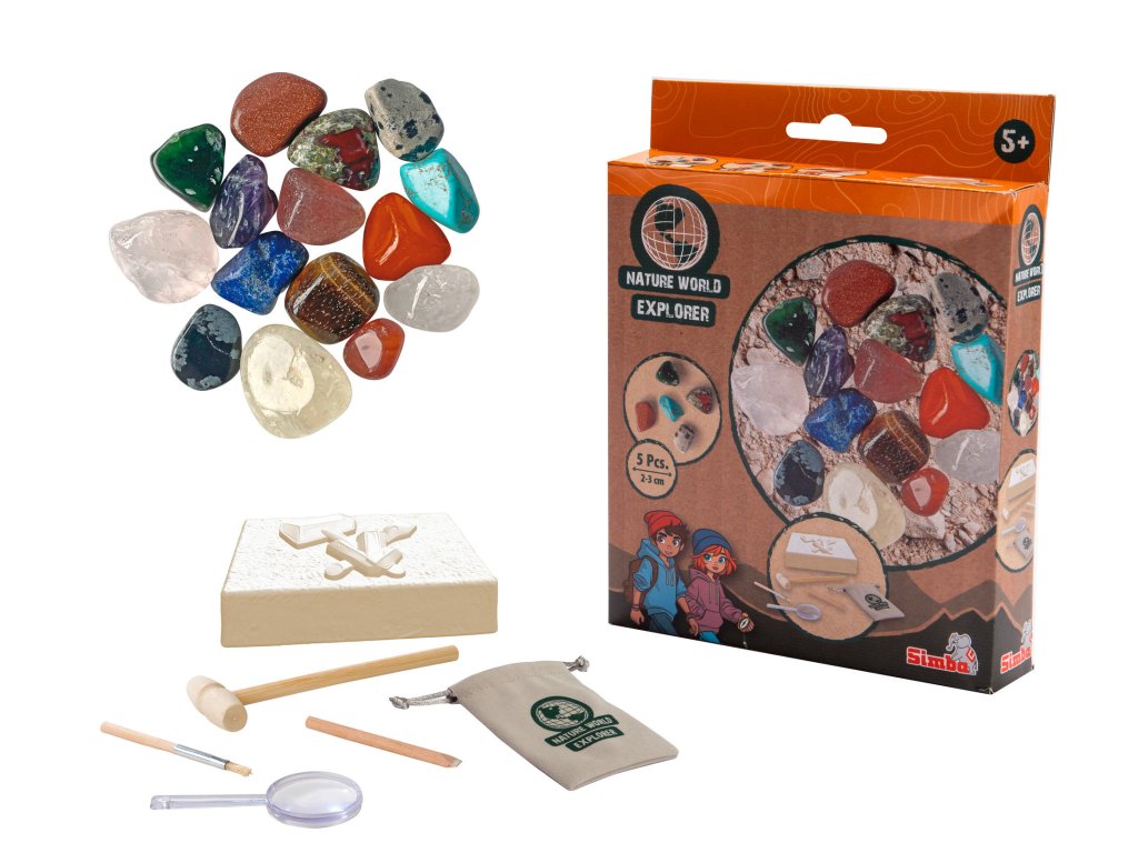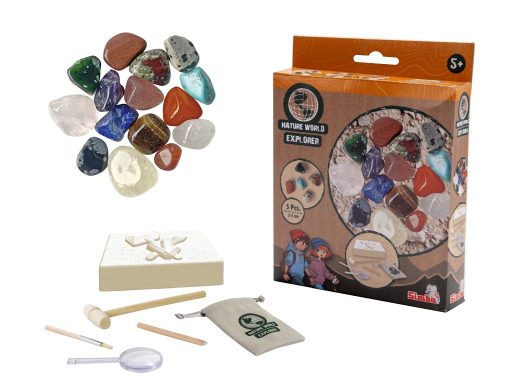 Sada na těžbu minerálů obsahuje vždy 5 ks minerálů o velikosti 2-3 cm. Součástí je lupa, nářadí a pytlíček.