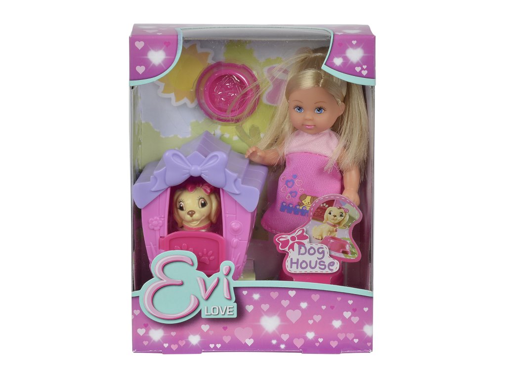Panenka Evička má psího mazlíčka, který dostal novou boudu. Výška panenky: 12 cm.