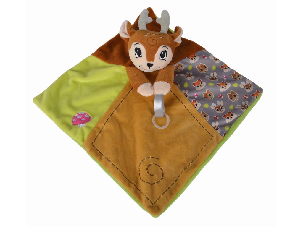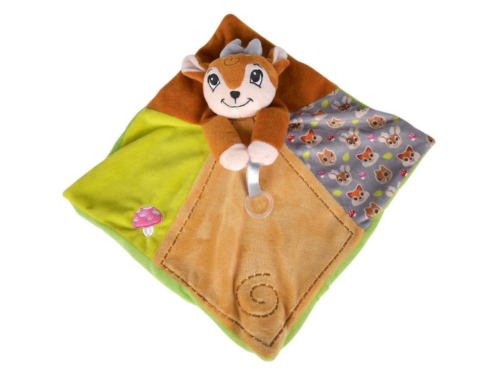 Plyšový jelen nebo liška pro nejmenší, usínáček/mazlíček s chrastítkem a kroužkem na dudlík. Velikost 30 cm.