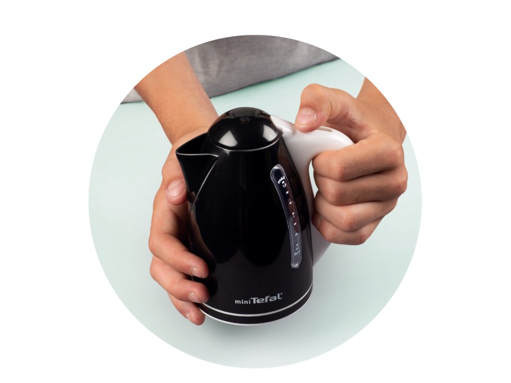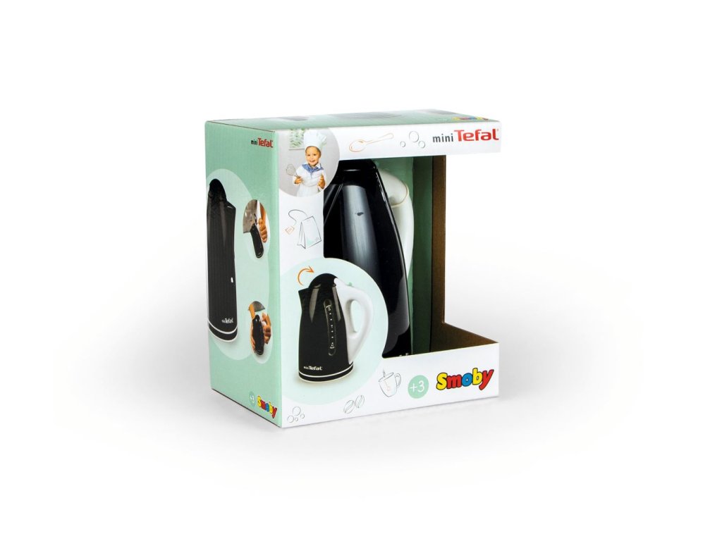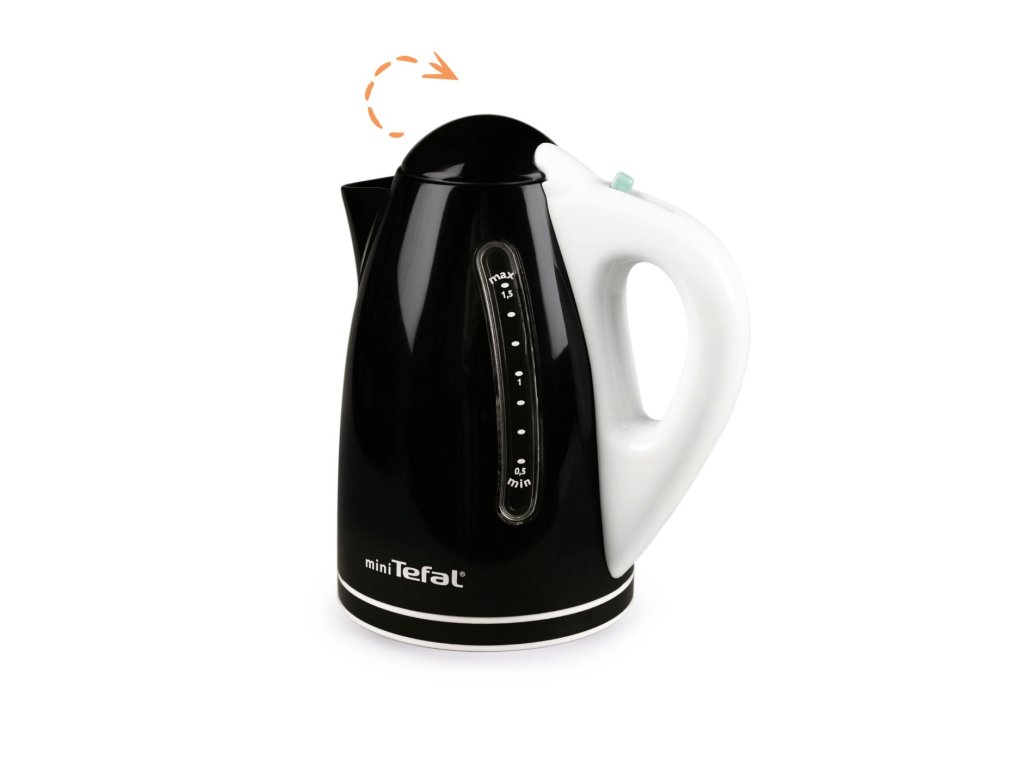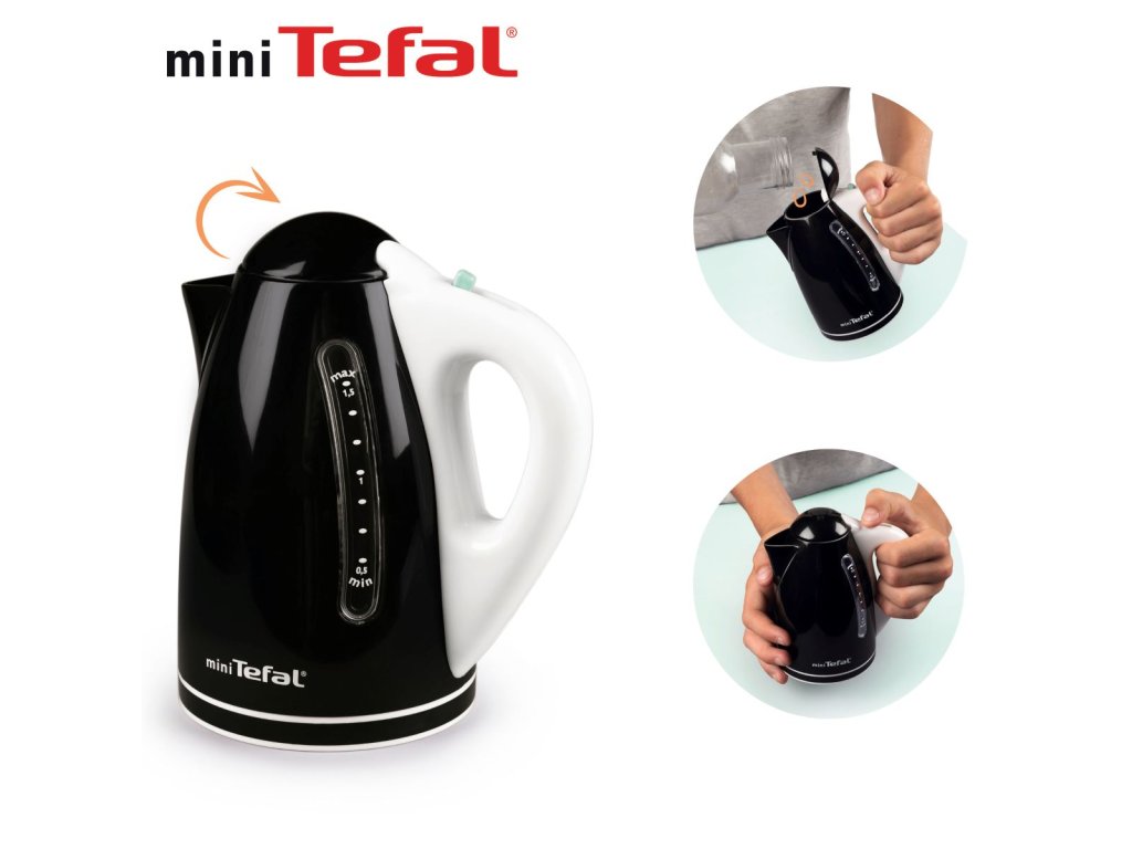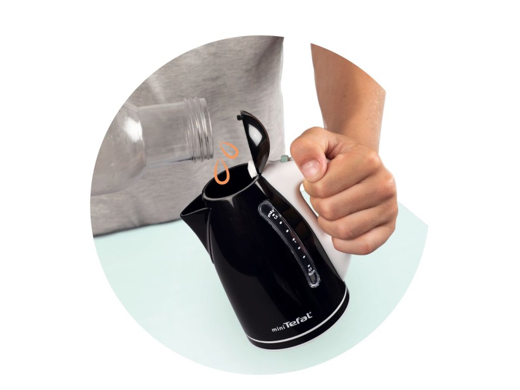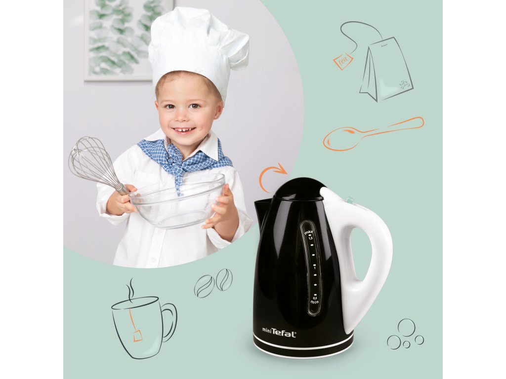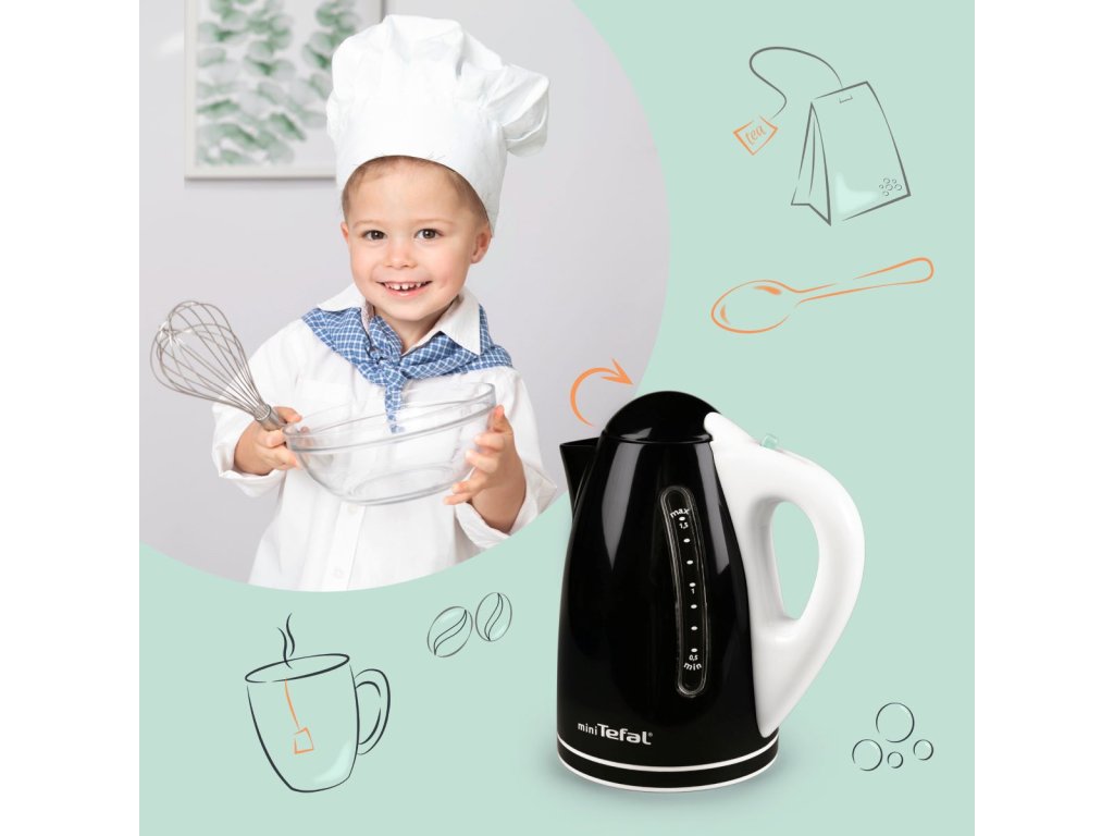 Věrná replika rychlovarné konvice mini Tefal "Express" jako doplněk pro kuchyňky od Smoby. Víko lze otevřít. Mechanická funkce: po stisknutí spínače se generuje zvuk varu vody. Rozměry (DxŠxV): 8 x 8 x 13,8 cm.