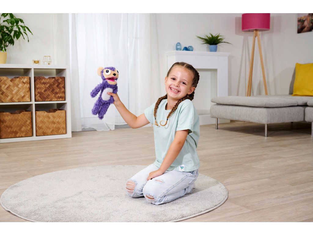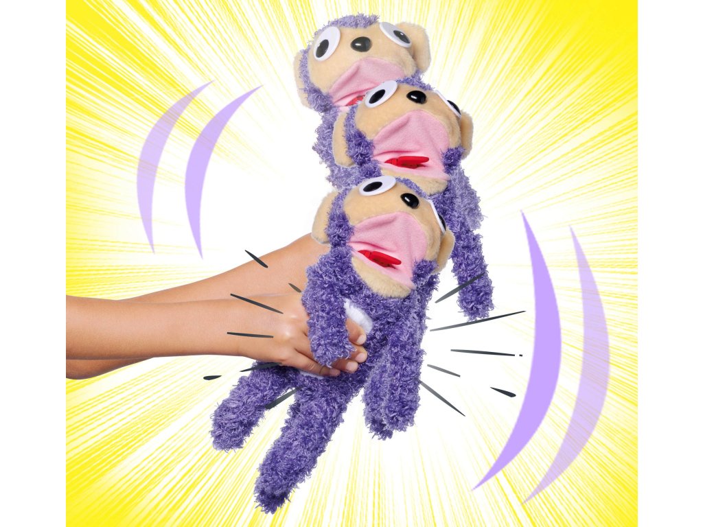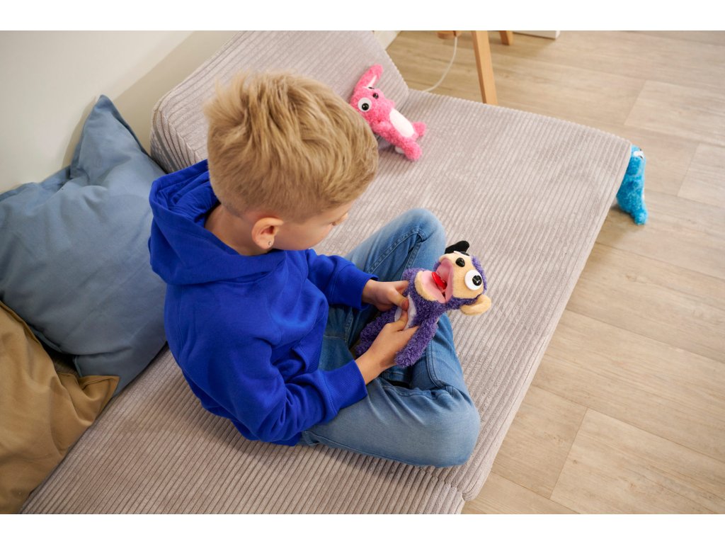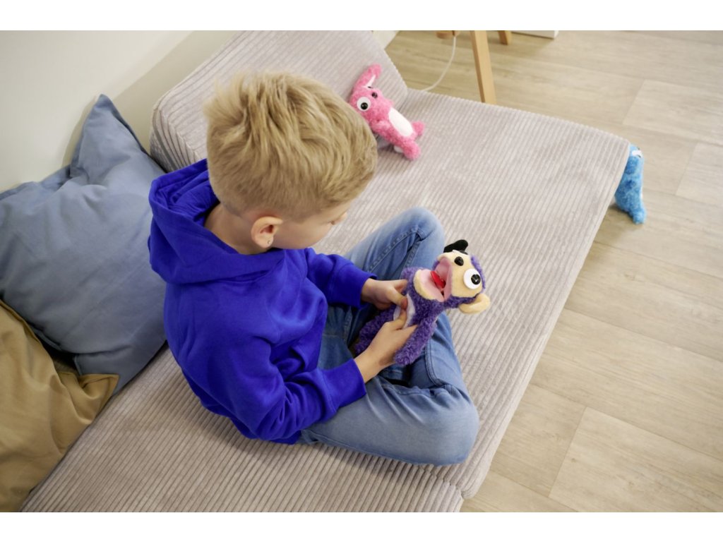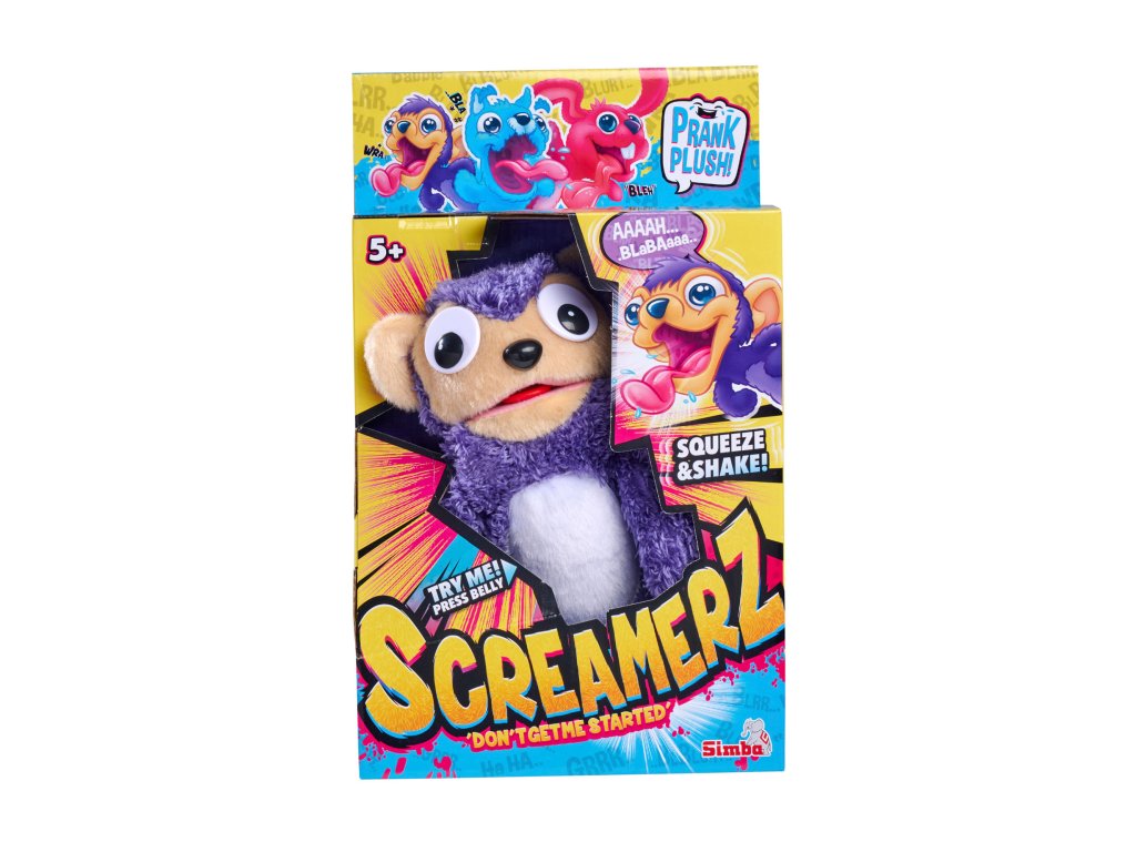 ScreamerZ, zábavný plyšák s bláznivýma očima a legračními zvukovými efekty. Lehce mu stiskni bříško a vydá roztomilý zvuk, stiskni více a začne křičet, stiskni ještě více a zatřepej s ním a on bude roztřeseně ječet. Velikost 30 cm. Barva fialová.
