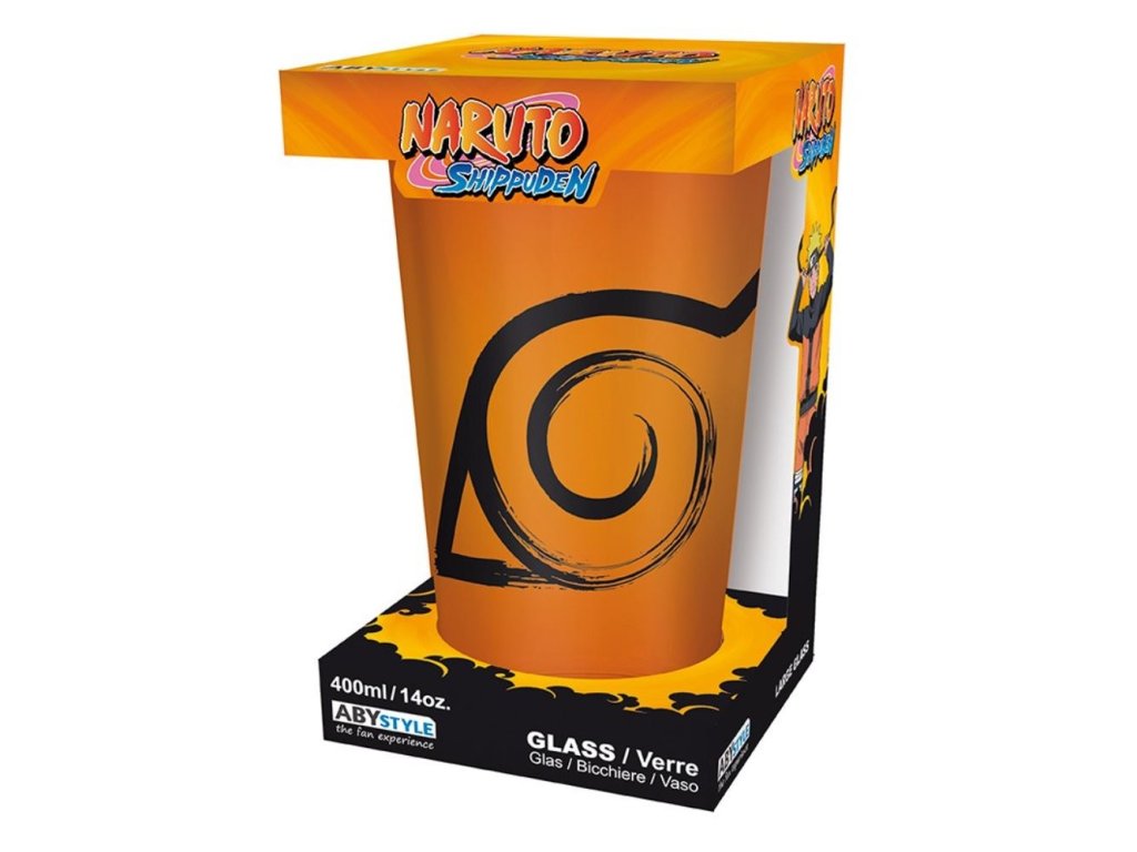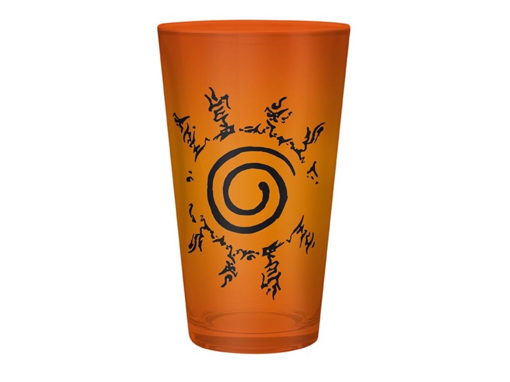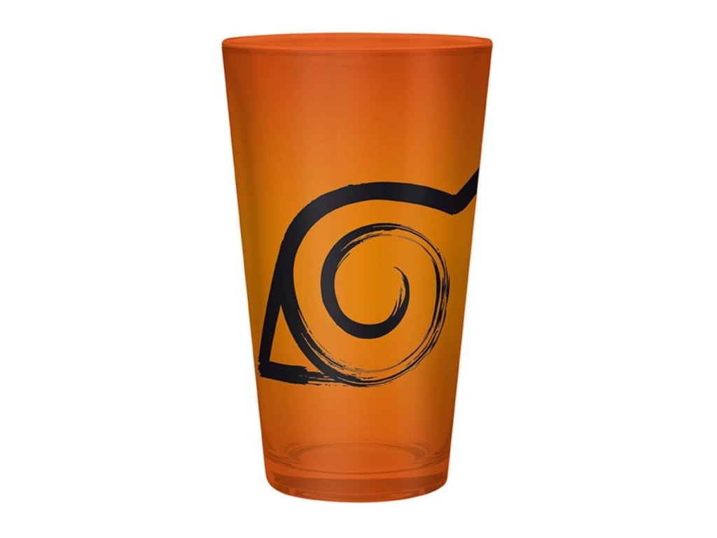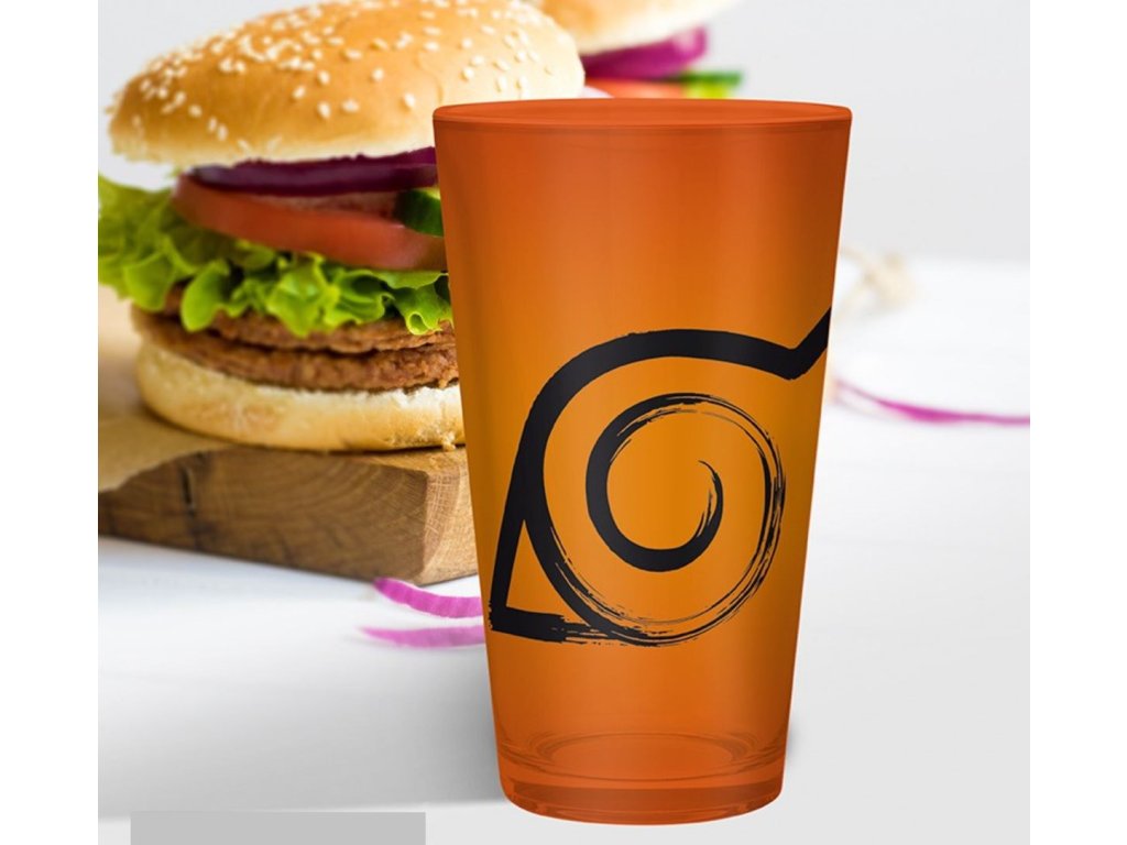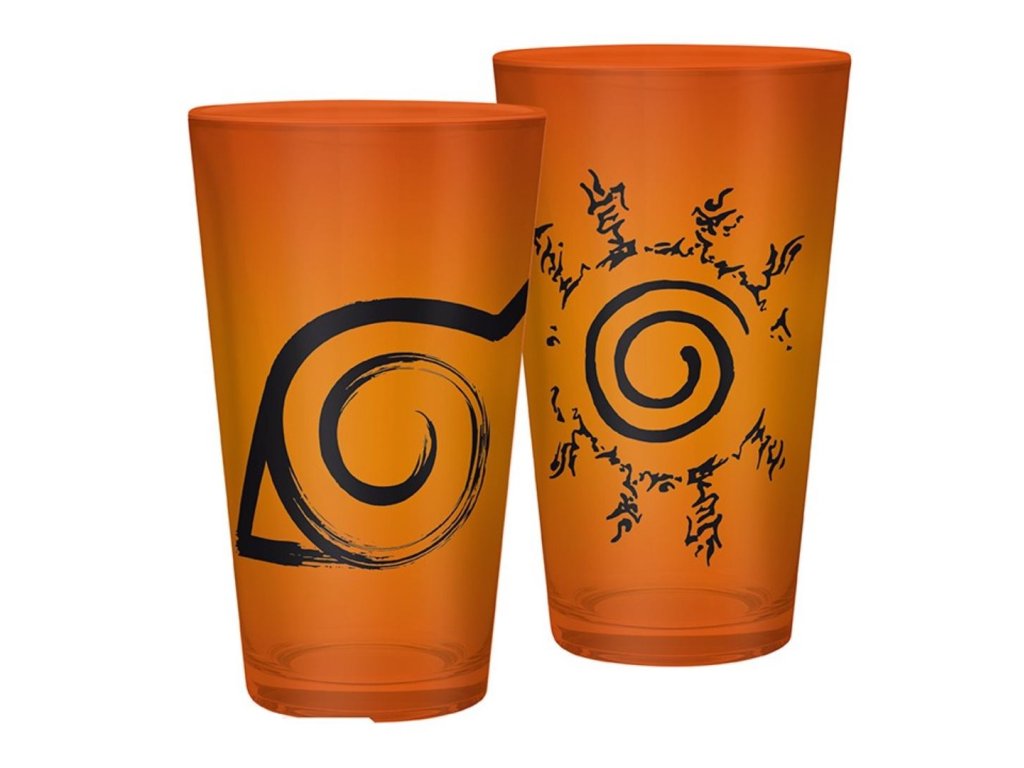 Tato sklenice Naruto Shippuden představuje znak vesnice Konoha a pečeť používanou k uvěznění Kyubiho v Narutovi.