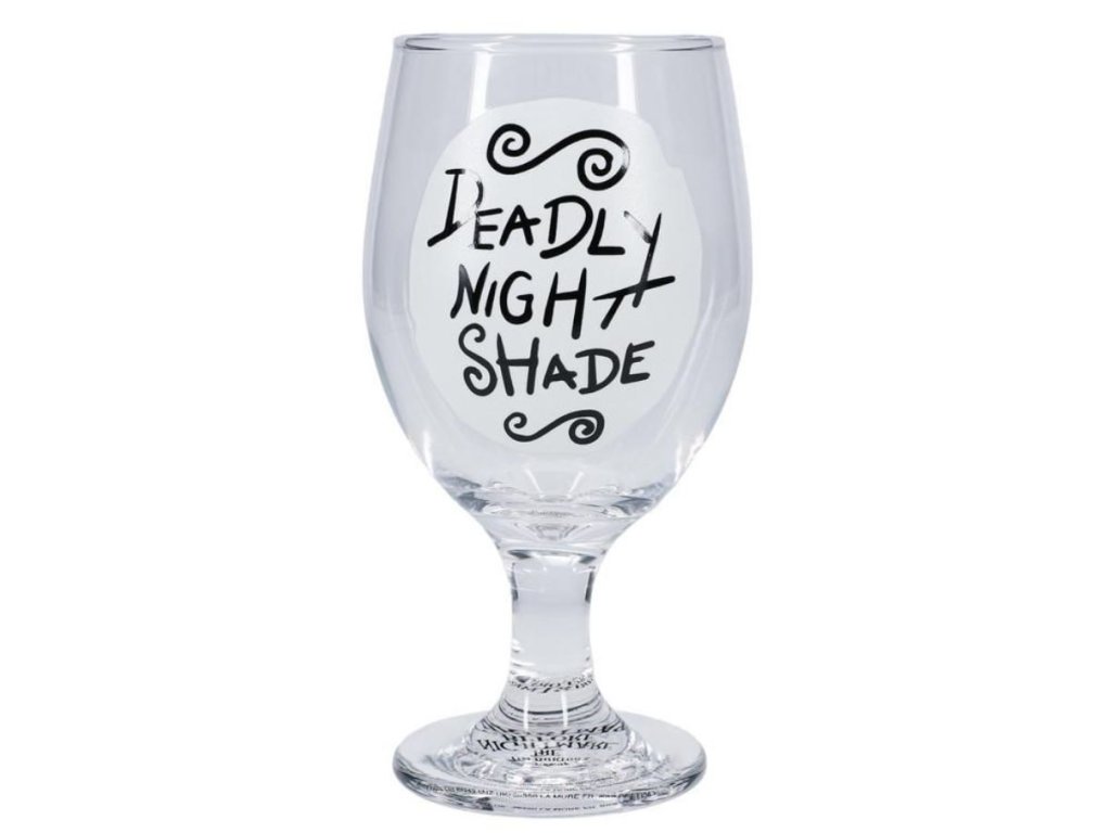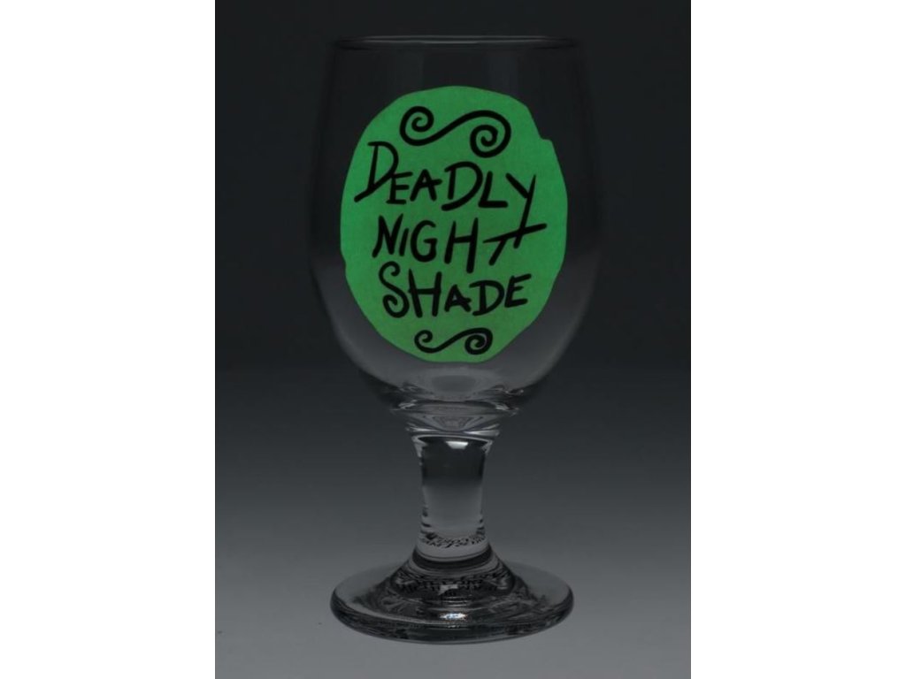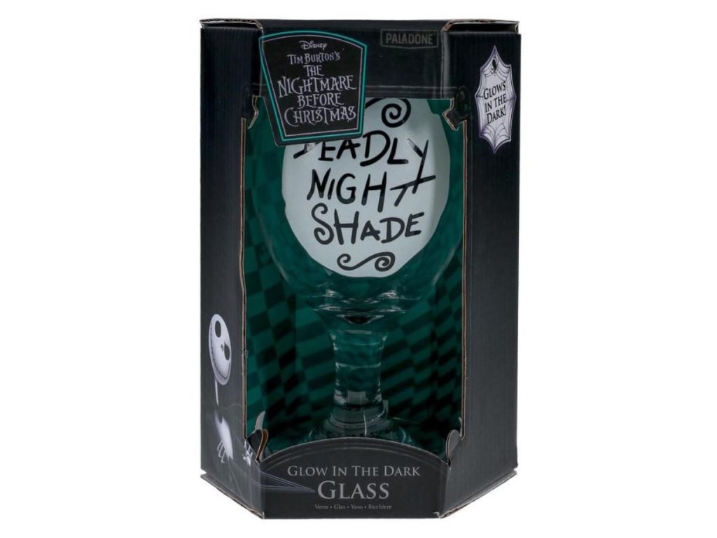 Sklenice z čirého skla s potiskem nápisu: ,,Deathly Night Shade'', který po nasvícení bude svítit ve tmě. Sklenice je zabalená v papírové - kartónové krabičce se stejným designem, a proto je vhodným dárkem pro všechny fanoušky muzikálu The Nightmare Before Christmas (Ukradené Vánoce).