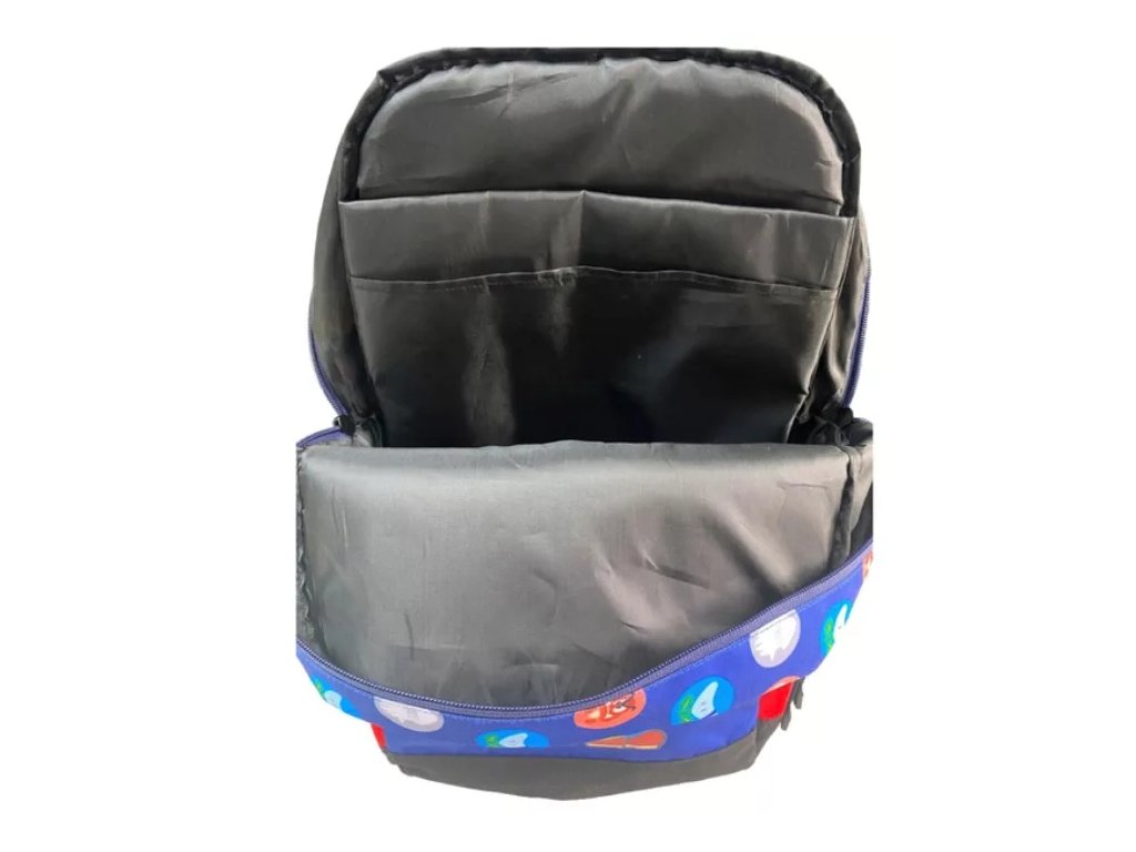 Školní modrý jednoprostorový batoh s přední kapsou + 2 postranní menší kapsy. Batoh s nastavitelnými popruhy a uchem pro snadné nošení v ruce je vhodný na každodenní využití. Uzavření všech přihrádek na stabilní zipy s koncovkami.