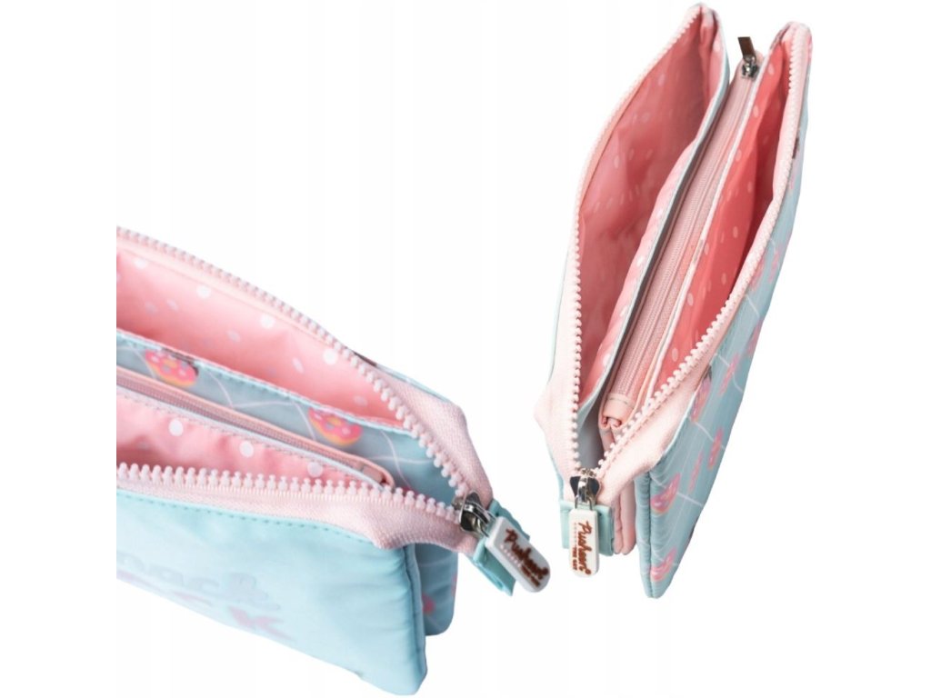 Světle modrý trojítý penál na tužky inspirovaný kočkou Pusheen, kterou vytvořili tvůrci Claire Belton a Adrew Duff v roce 2010. Jméno Pusheen pochází z irského slova "puisin" v překladu kotě.