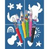 Balení obsahuje 6 barevných foukacích fixů s potiskem a 4 barevné papírové šablonky v oblíbených motivech.