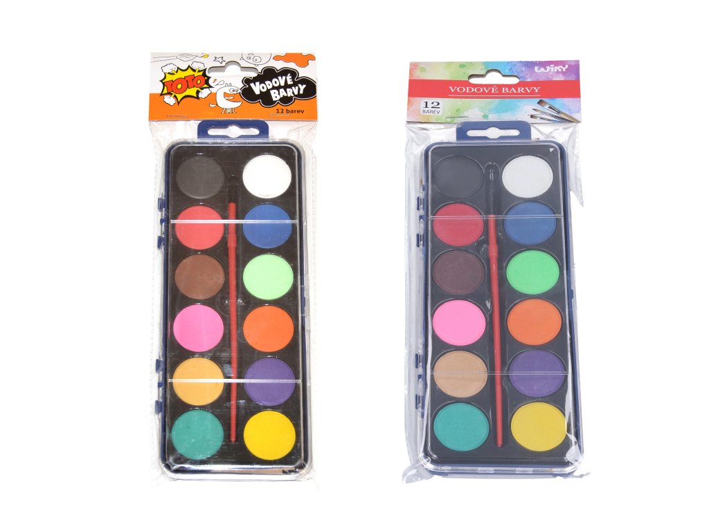 Vodové barvy se štětcem - 12 barev
