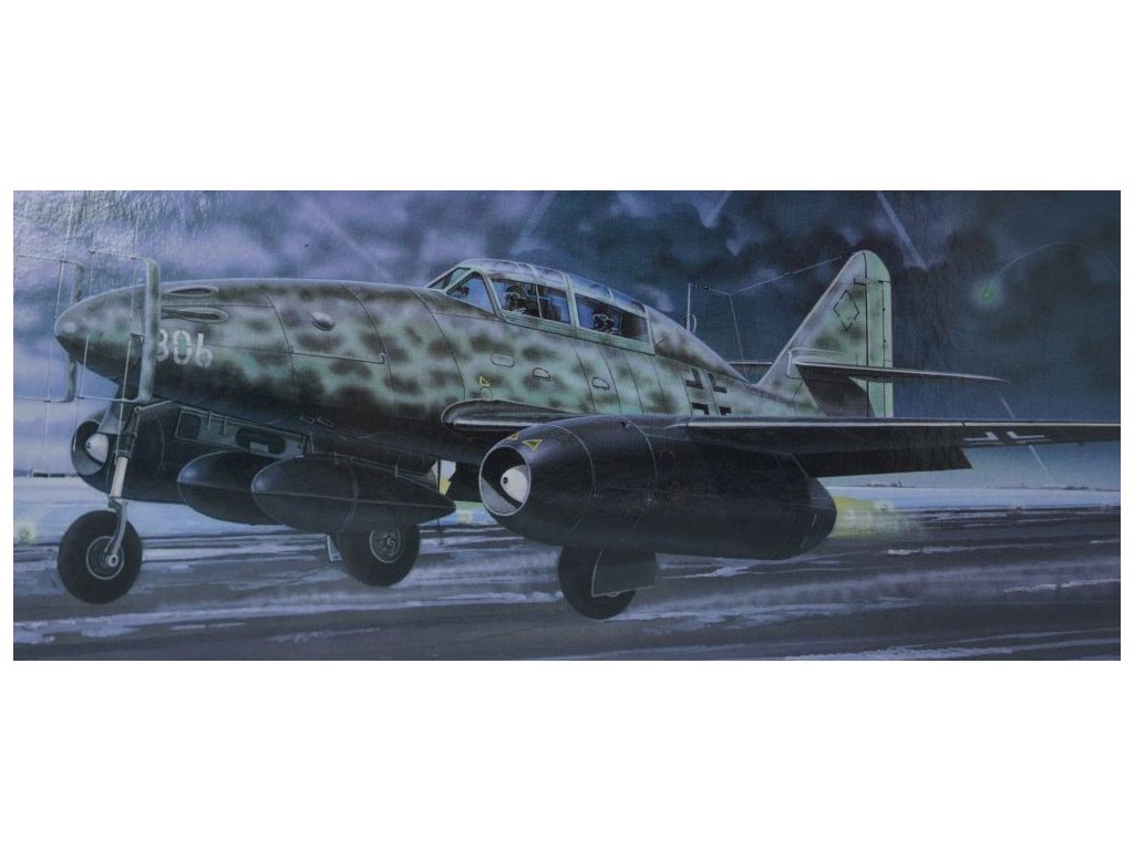 Slepovací stavebnice lepidlo a barvy nejsou součástí balení. Model v měřítku 1/72, počet dílků 68, délky modelu 14,7cm, rozpětí křídel 17,4cm. Model obsahuje kovové dílky. Značení Německo 1945, ČSR 1946