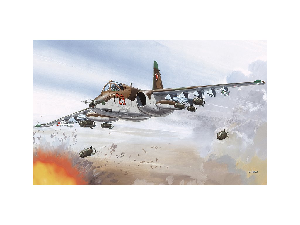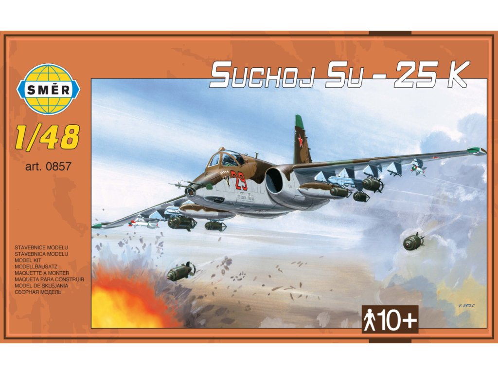 Plastikový model letadla Suchoj SU-25 K v měřítku 1:48, počet dílků 163, rozpětí křídel 29,9 délka modelu 32,35. Balení neobsahuje barvy a lepidlo, počet zbarvení 6. Je vyrobeno v ČR.