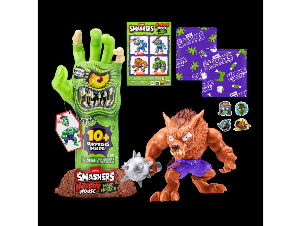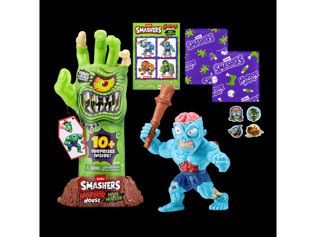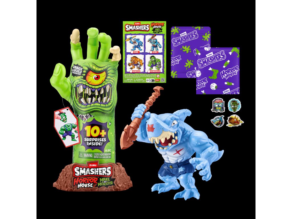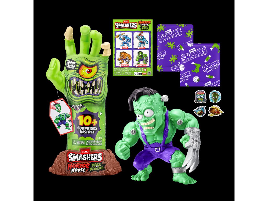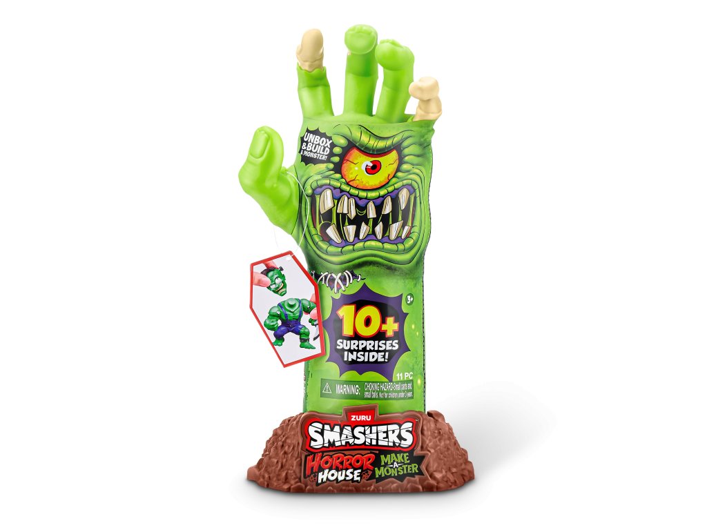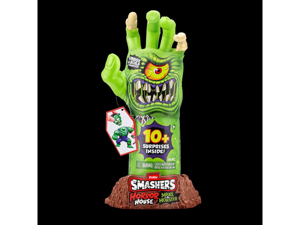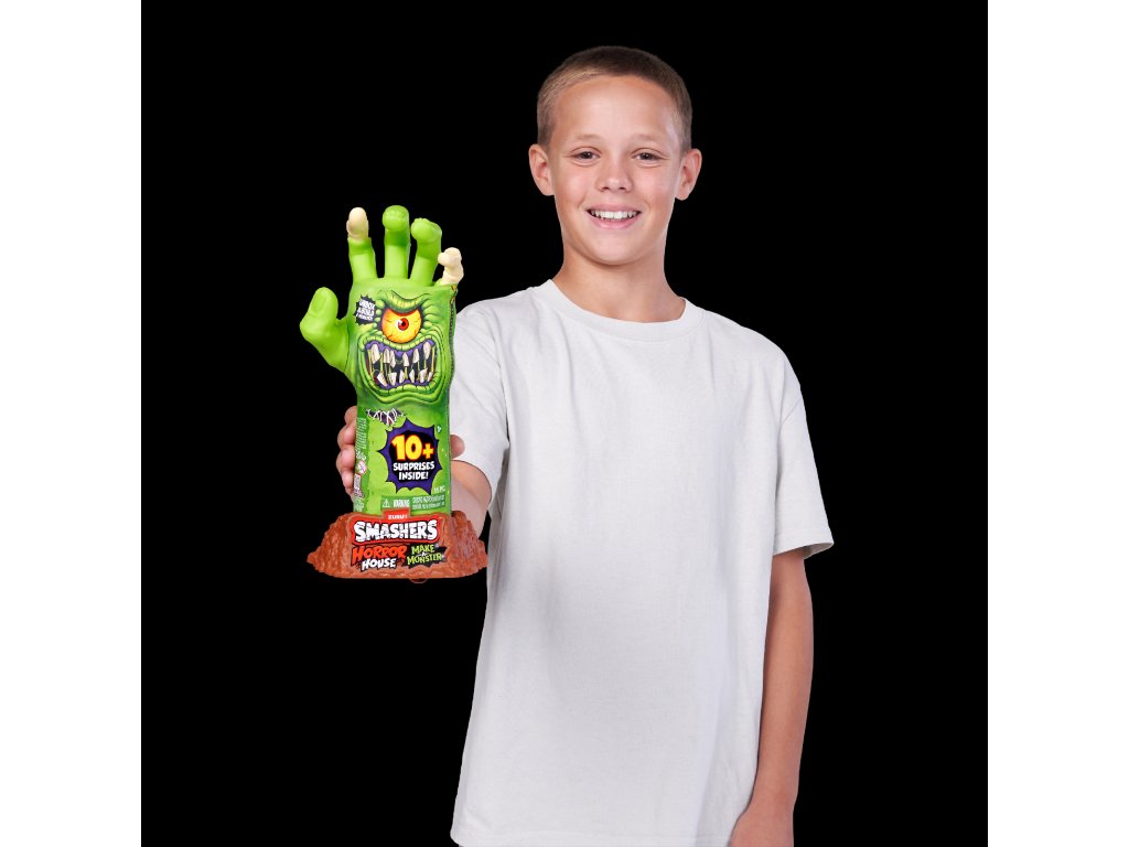 Smashers Horror House Dissect odemkne husí kůži i pořádnou dávku zábavy! Tato děsivá hračka ve tvaru ruky kostlivce se dá otevřít a odhalí sbírku strašidelných částí příšer, které čekají na sestavení. Připravte se zahrát si na Frankensteina - rozbalte, najděte a složte vlastního hrůzostrašného tvora!