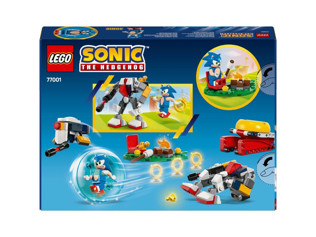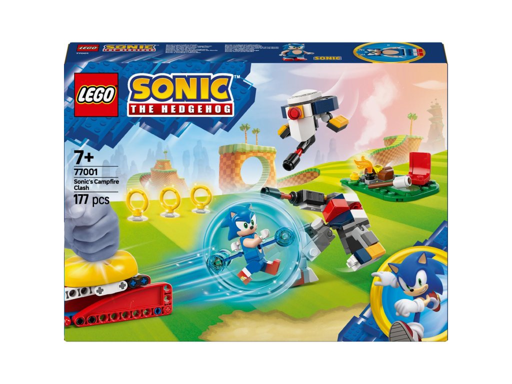 Milovníci videoher od 7 let se se sběratelskou stavebnicí LEGO® Sonic the Hedgehog™ (77001) Sonic a souboj u táboráku můžou těšit na zábavná dobrodružství. Tato stavebnice LEGO® s postavou Sonic the Hedgehog™ obsahuje model táboráku, vystřelovač koulí rychlosti, kouli rychlosti a doplňky včetně Chaos Emerald a 3 zlatých prstenů. Tato videoherní stavebnice obsahuje také 4 postavy ze světa Sonica: Minifigurku Sonica, „létající“ robotický dron G.U.N. Beetle, pohyblivou figurku robota G.U.N. Huntera a Tockyho. Tato interaktivní, funkcemi nabitá stavebnice Sonic pro kluky a holky děti a fanoušky inspiruje k vyprávění nových příběhů se Sonicem a nepřátelskými roboty. Vychutnají si okamžiky odpočinku u táboráku, postaví se robotům při záchraně Tockyho a získají 3 zlaté prsteny. Rozšiřte herní možnosti s dalšími kreativními akčními stavebnicemi LEGO Sonic the Hedgehog (prodávají se samostatně). Děti se můžou těšit na intuitivní stavitelské dobrodružství s aplikací LEGO Builder. V ní si lze přibližovat a otáčet modely ve 3D, ukládat stavebnice a sledovat postup.