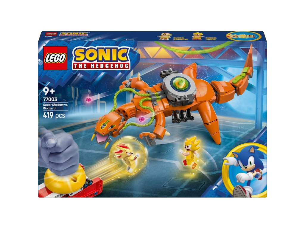 Inspirujte se k akčním dobrodružstvím s videohrou pro děti a fanoušky od 9 let se stavebnicí Super Shadow vs. Biolizard (77003). Tato sběratelská stavebnice z řady LEGO® Sonic the Hedgehog™ obsahuje figurku Biolizarda z kostek s energetickým modulem, vystřelovač koulí rychlosti, kouli rychlosti a doplňky včetně Chaos Emeraldu. Tento zábavný dárek pro gamery obsahuje také 2 další postavy: Minifigurku Super Shadowa a Super Sonica. Tato interaktivní stavebnice s motivem Sonica inspiruje fanoušky k vymýšlení nových příběhů se Super Shadowem, Super Sonicem a Biolizardem, obraně vesmírné kolonie ARK před Biolizardem nebo získávání Chaos Emeraldu z energetického modulu. Rozšiřte herní možnosti s dalšími kreativními akčními stavebnicemi LEGO Sonic the Hedgehog (prodávají se samostatně). Děti se můžou těšit na intuitivní stavitelské dobrodružství s aplikací LEGO Builder. V ní si lze přibližovat a otáčet modely ve 3D, ukládat stavebnice a sledovat postup.