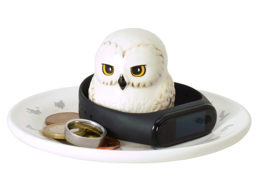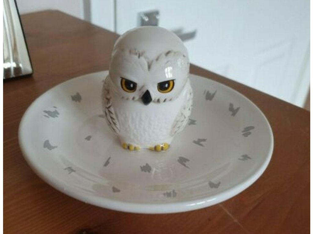 Velice pěkná, bílá a atraktivní keramická mísa v níž je uprostřed umístěna sova Hedwiga, pro praktické využití odkládání šperků.