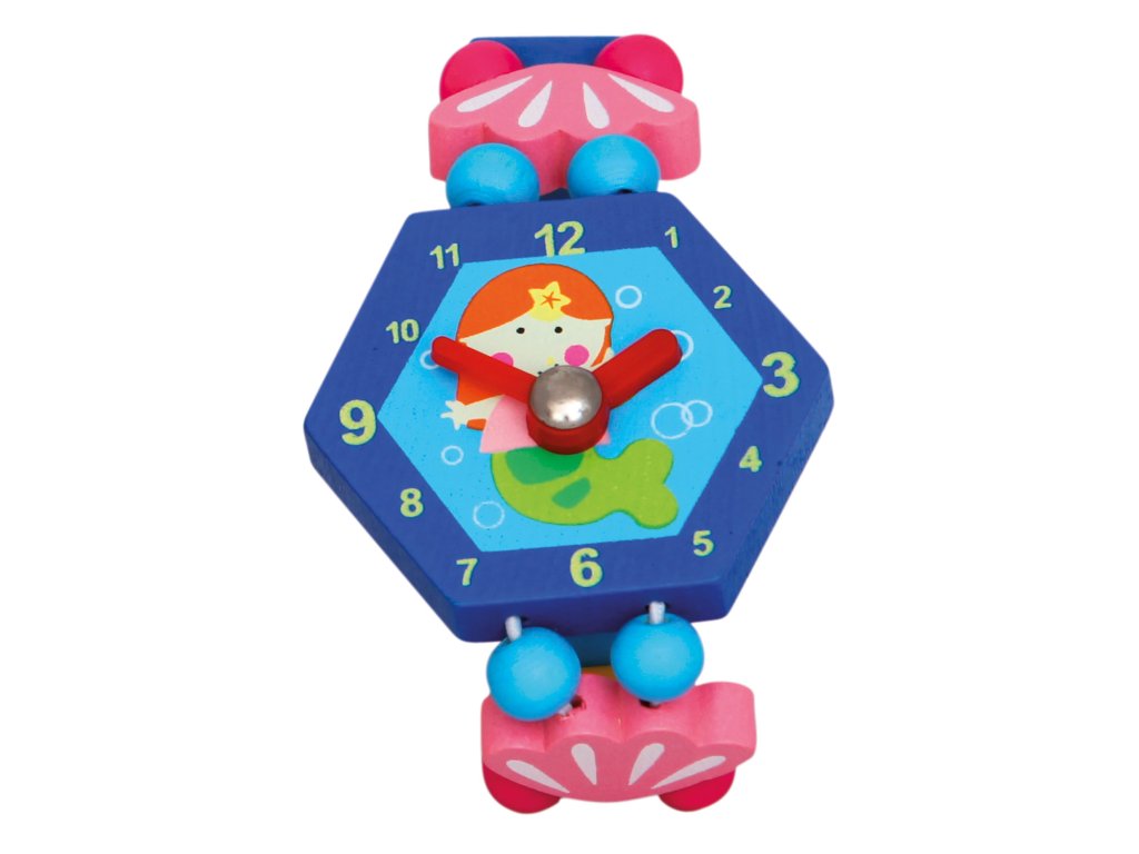 Dětské dřevěné hodinky modré s motivem víly. Velikost 8cm.