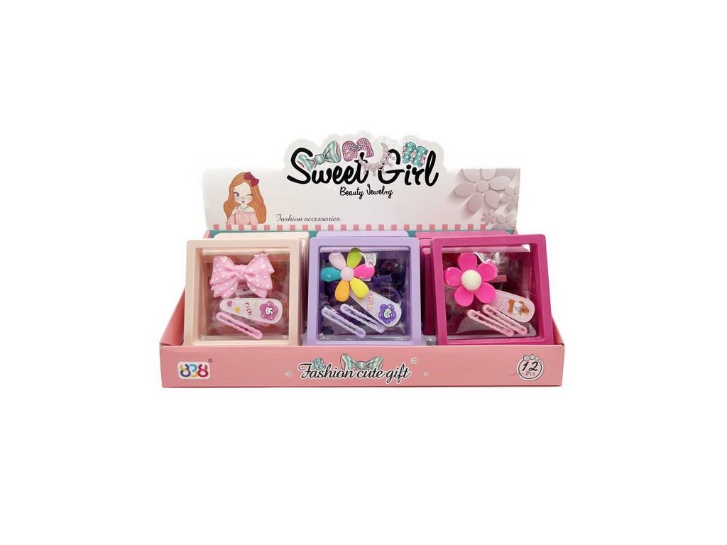 Sponky do vlasů set. Obsahuje 4 sponky. Rozměry největší sponky 5x1,5x5. Display box 12 ks.
