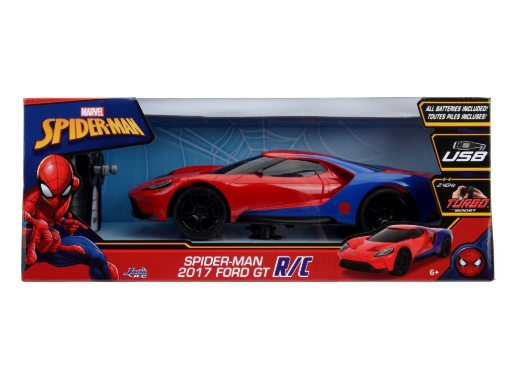 RC Marvel Spiderman 2017 Ford GT v měřítku 1:16. Velikost 29 cm. 2 kanál, 2,4 GHz, turbo, USB nabíjení. Rychlost 9 km/h.