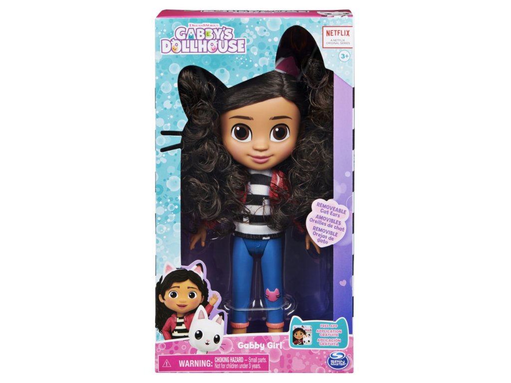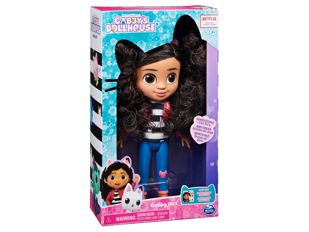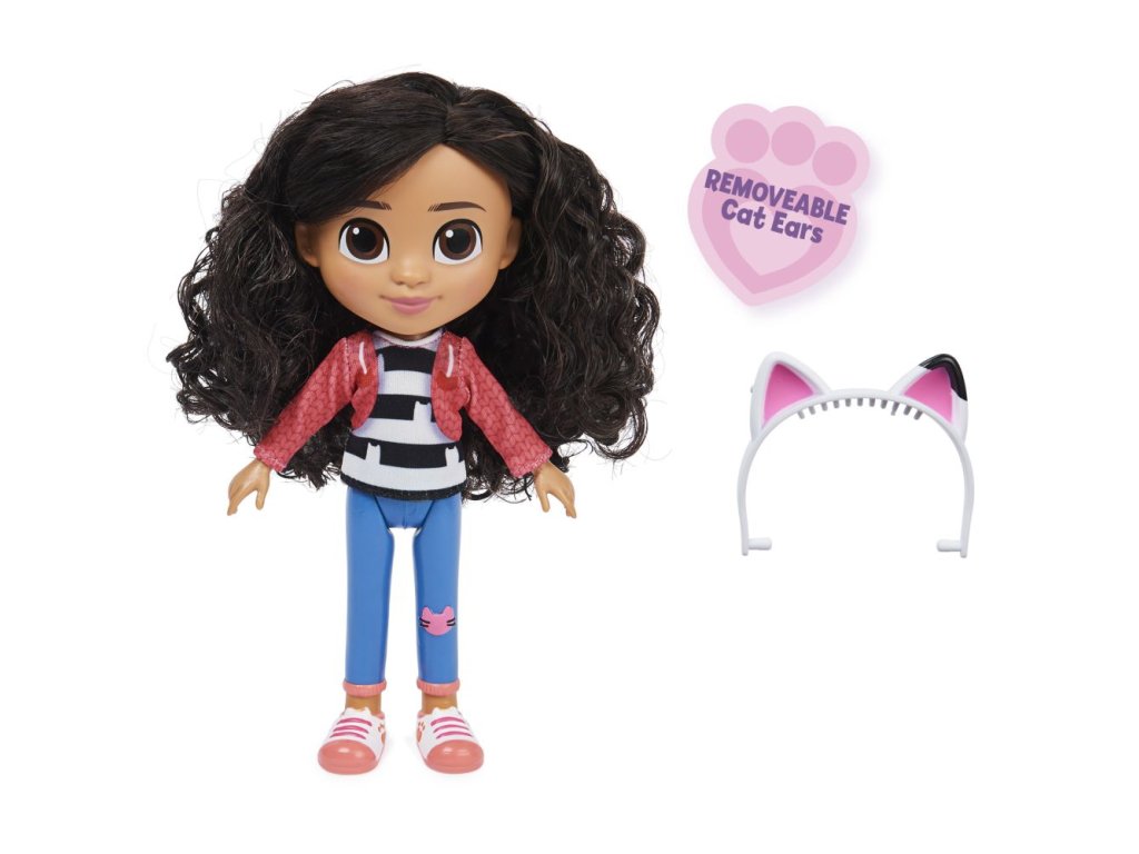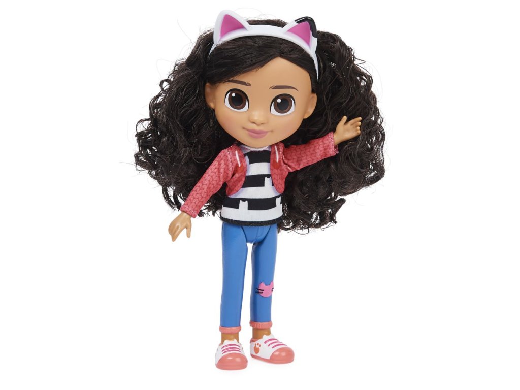 Gabby česací paneka je 20 cm veliká. Má oblečení ze seriálu a čelenku s kočičíma ušima. Čelenku můžes sundat a poté učesat Gábince hebké a vlnité vlasy. Vhodné od 3 let.