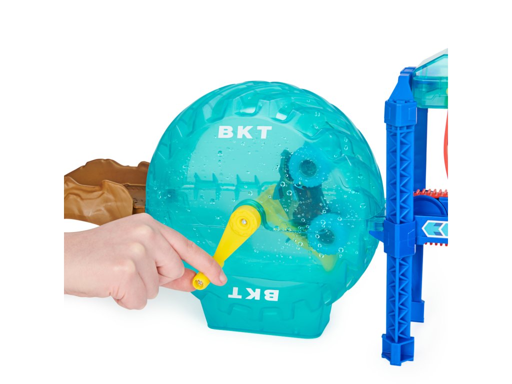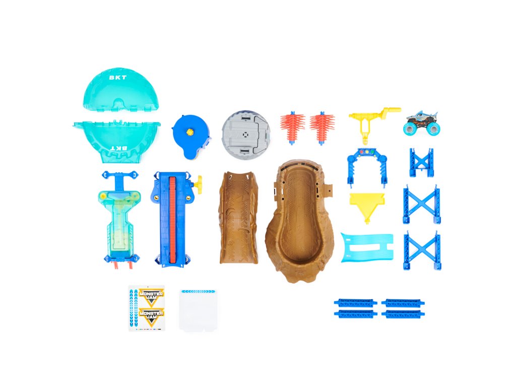 Megalodon Monster Wash je velká myčka Monster Jam trucků, která je dlouhá více než 90 cm a přemění vaše Monster Jam trucky ze špinavých na čisté a pak vás nechá to udělat znovu. Obsahuje technologii držení s pamětí měnící barvu, výkonnou myčku, funkční dopravní pás, rotující kartáče a odstředivku pro vysušení auta – přesně jako ve skutečné myčce! Součástí je exkluzivní kovový model monster truck Megalodon v měřítku 1:64, který mění barvy! Najeď s Megalodonem na rampu a ponoř se do myčky Power Wash. Zavři myčku Power Wash a roztoč ji pro intenzivní mycí cyklus. Sleduj, jak tvůj Monster Truck Megalodon mění barvu a odhaluje pod povrchem úhledný čistý design. Ponoř Megalodona měnícího barvu do teplé vody a sleduj, jak mizí skvrny od špíny. Postříkejte ho ledovou vodou, aby se opět zašpinil. Projeďte se po dopravním pásu mezi rotujícími kartáči, abyste ho trochu vydrhli. Je čas předvést žraločí design. Díky dvěma způsobům výjezdu z myčky se můžeš rozhodnout, zda se ponoříš do misky Dirt Donut a znovu se ušpiníš, nebo se budeš prohánět po skluzavce a předvedeš svůj megalodonský styl. Set Megalodon Monster Wash je nabitý spoustou interaktivními způsoby hraní! Je kompatibilní s jakýmkoli náklaďákem Monster Jam v měřítku 1:64. Perfektní dárek pro děti, které milují vodní hrátky, hračky se závodními auty, interaktivní hraní a svět Monster Jam. Přeneste si akci Monster Jam domů s myčkou Megalodon Monster Wash. Jazykové mutace: CZ, SK, EN, ESP, DE, PL, IT. Rozměr autíčka: 7,6 x 9,7 x 6,6 cm. Rozměry balení: 30,8 x 60,96 x 12,7 cm. Věk: 3+