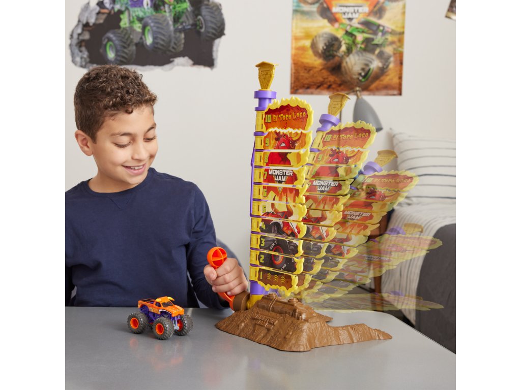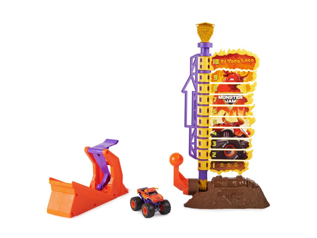 Dosáhněte nových výšin v soutěži Monster Jam El Toro Loco Big Air Challenge. Tato hrací sada je více než 50 cm vysoká a obsahuje exkluzivní náklaďák El Toro Loco Monster, odstřelovač a panelový terč. Díky 5 různým polohám odpalovacího zařízení můžeš mířit vysoko nebo soutěžit na vzdálenost s ostatními monster trucky v měřítku 1:64 (prodávají se samostatně). Nechte svůj truck dolétnout na vrchol a zažijte výbušnou akci a podívejte se na ohňostroj jako na světovém finále XXI s vlastními monster trucky. Tato hrací sada je dokonalým doplňkem vaší sbírky monster trucků pro předstíranou hru a nápaditou zábavu. Přeneste si vysokooktanové vzrušení z Monster Jam domů s oblíbenými postavičkami, jako jsou Grave Digger a El Toro Loco. Hračky Monster Jam, jako jsou autíčka a náklaďáky na dálkové ovládání, jsou ideálním dárkem jako hračky pro holky i kluky od 3 let. Předveď své dovednosti s Monster Jam El Toro Loco Big Air Challenge. Obsahuje: 1 x Monster Jam Truck 1:64, 1x panelový terč, 1 x odstřelovač, 1x arch nálepek, 1 x návod. Jazykové mutace: CZ, SK, EN, ESP, DE, PL, IT. Rozměry balení: 30,48 x 38,1 x 7,62 cm.