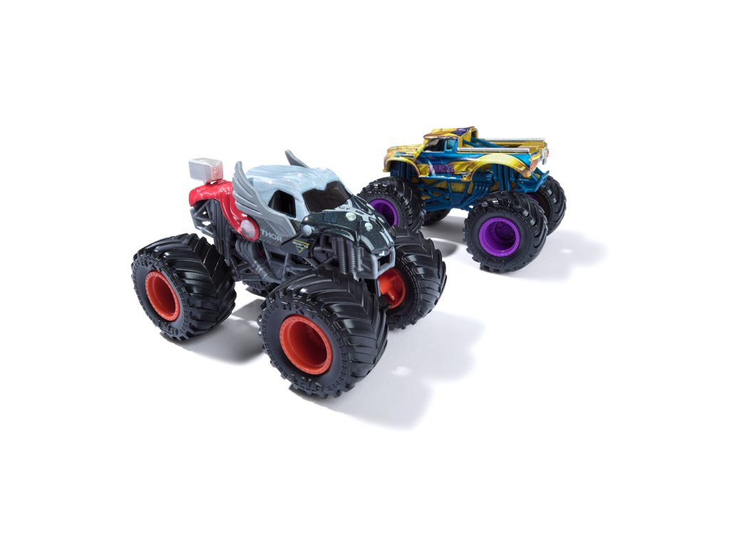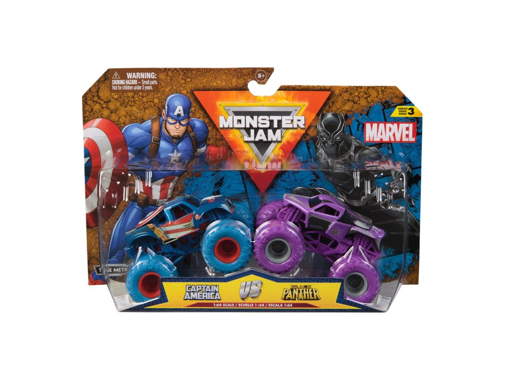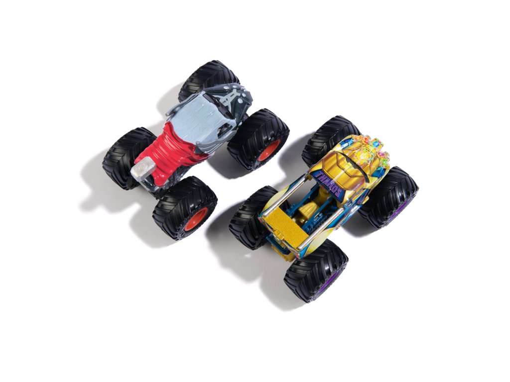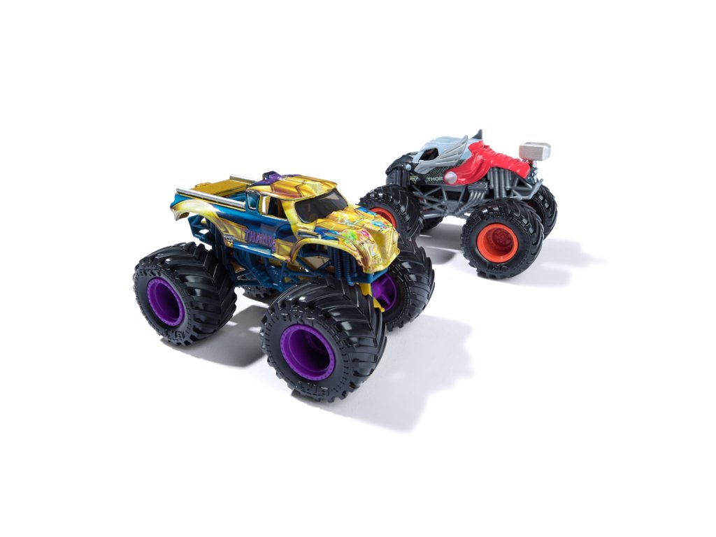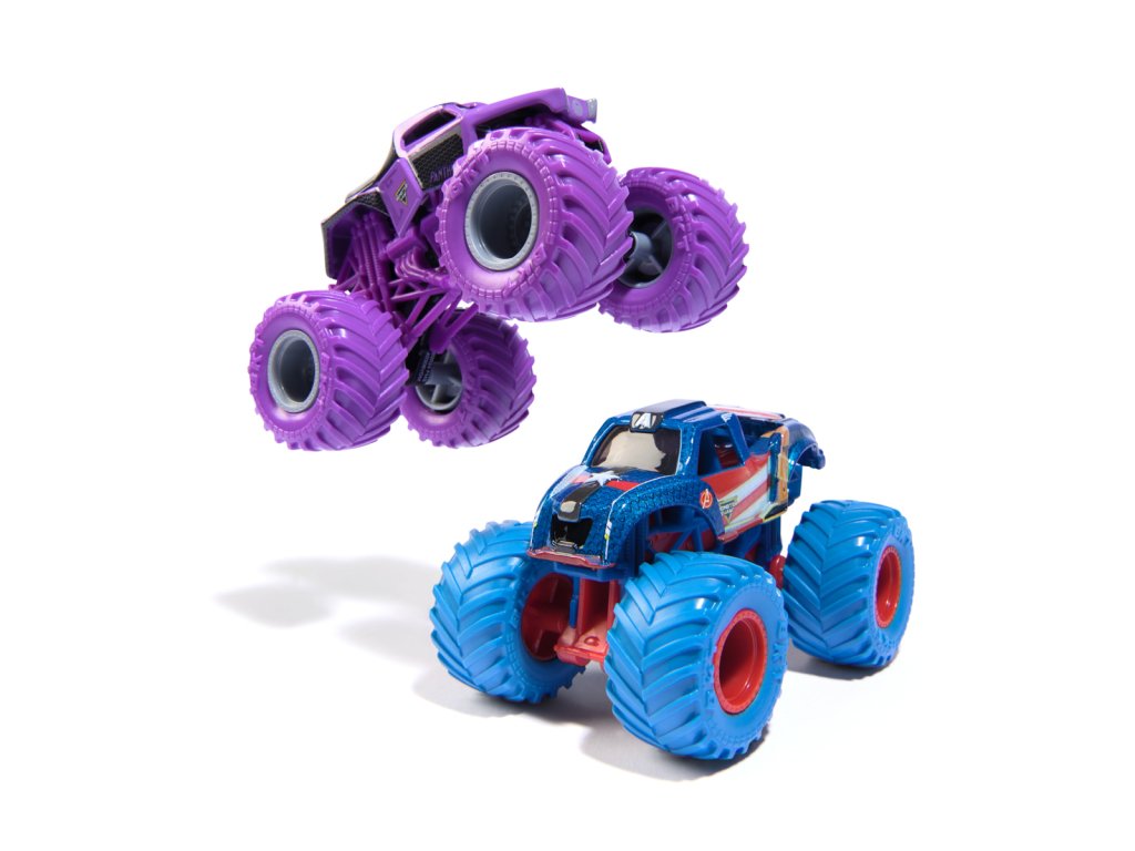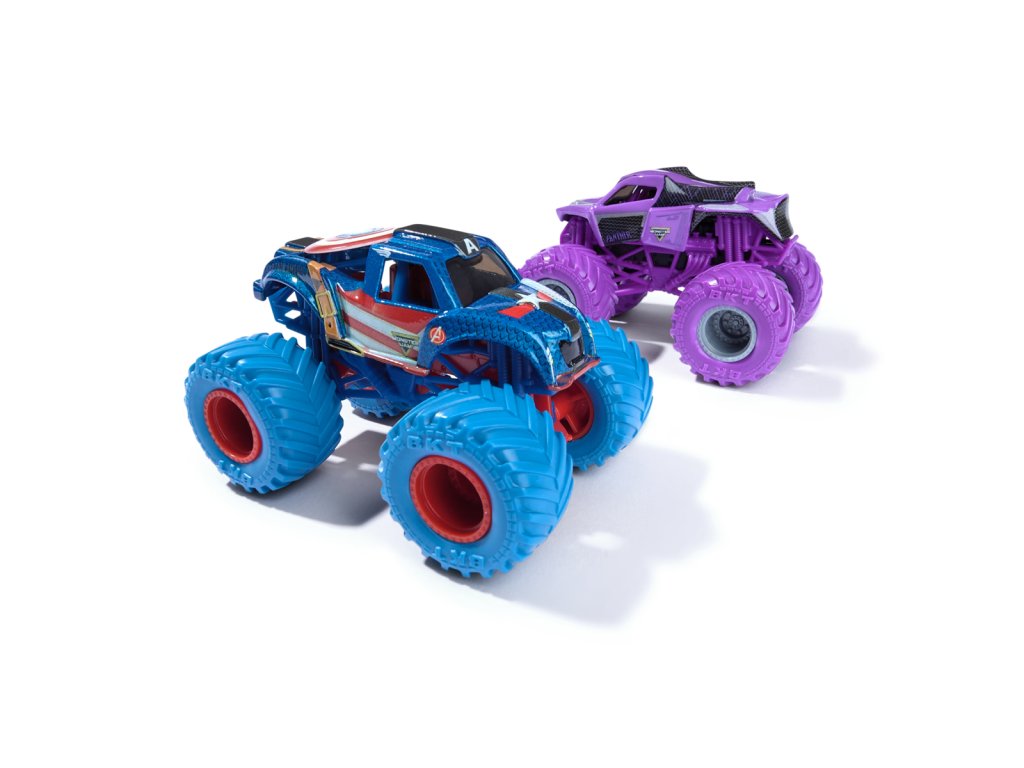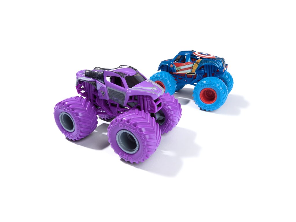 Pusť se do napínavých bitev Monster Jam a Marvel Heroes s oficiálními modely trucků Marvel Monster Jam v měřítku 1:64. V těchto sadách vystupují ikoničtí hrdinové Marvelu, například Capitain America vs. Black Panther, nebo Thanos vs. Thor. Každý kamion v sadě 2 – Pack, vytvořený pro fanoušky superhrdinů, je detailně propracovaný zázrak s autentickými pneumatikami BKT, výraznými stylizovanými ráfky a podvozkem, který je připraven na akci Monster Jam. Stejně jako jejich inspirace ve skutečné velikosti ti tyto trucky přinesou zábavu v aréně na dosah ruky. Děti si mohou vytvářet vlastní dechberoucí kaskadérské kousky, epické bitvy a souboje hodné šampionátu přímo po vybalení z krabičky. Nasbírejte všechny modely Marvel Monster Jam a vytvořte si legendární sestavu. Trucky Monster Jam, ideální pro děti od 3 let, jsou ideálním dárkem a zvou malé fanoušky do světa, kde se střetávají super schopnosti Marvelu a Monster Jamu. Začni budovat svou sbírku Monster Jam ještě dnes. Jazykové mutace: CZ, SK, EN, ESP, DE, PL, IT. Baleno v blistru. Assort je náhodný mix modelů. Výběr nelze ovlivnit. Každá sada obsahuje 2 modely. Rozměry modelu: 7,6 x 9,7 x 6,6 cm. Rozměry balení: 16,51 x 25,4 x 6,99 cm. Věk: 3+