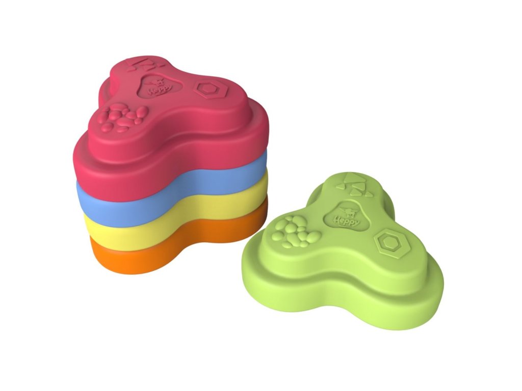 Sada 5 balančních nášlapných kamenů pro děti- v červené, modré, zelené, oranžové a žluté barvě - Měkké kostky se strukturovaným povrchem pro hmatovou hru a stavění. Tyto barevné hrací kameny byly speciálně vyvinuty pro batolata od 12 měsíců a hravou formou podporují smyslové vnímání, motorický vývoj a smysl pro rovnováhu. Vyrobeno z EPP: 90 % vzduchu, 10 % materiálu. Obzvláště robustní a extrémně lehké. Tři různé povrchové textury, kameny unesou zatížení až 120 kg. Díky svému materiálu jsou Heppy Rocks teplejší než jiné plastové hračky, snadno se čistí, jsou odolné vůči slinám a potu a ideální pro použití uvnitř i venku.