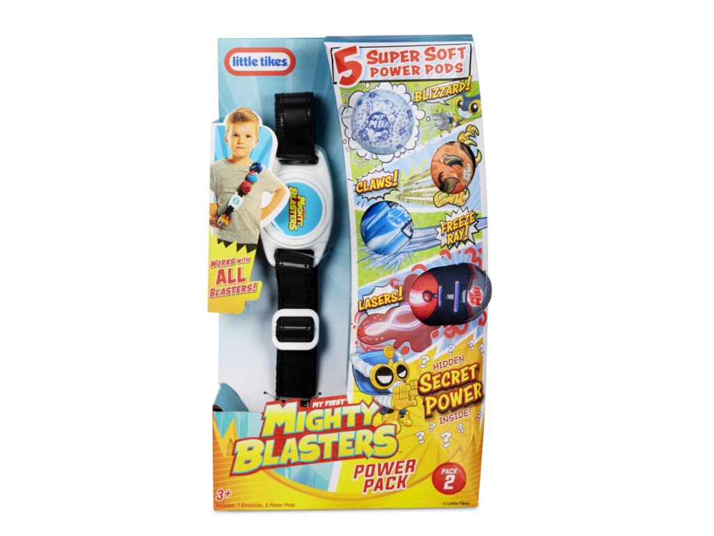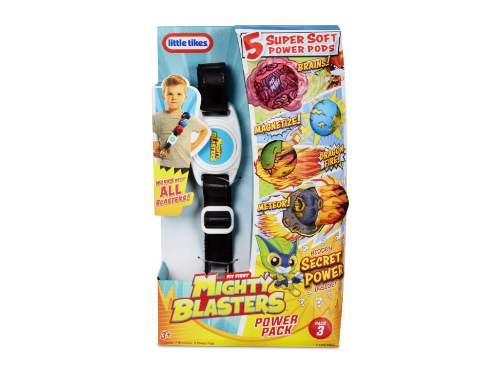 Řada Mighty Blasters je navržena speciálně pro děti ve věku od tří do pěti let, podporuje nápadité hraní rolí a dává jim hračky, které jsou bezpečné a snadno použitelné a pomáhají rozvíjet představivost! Pás s náboji je dodáván s pěti barevnými měkkými náboji a pásem pro snadné nošení. Funguje se všemi Mighty Blasters a podporuje fantastickou zábavu při hraní rolí!