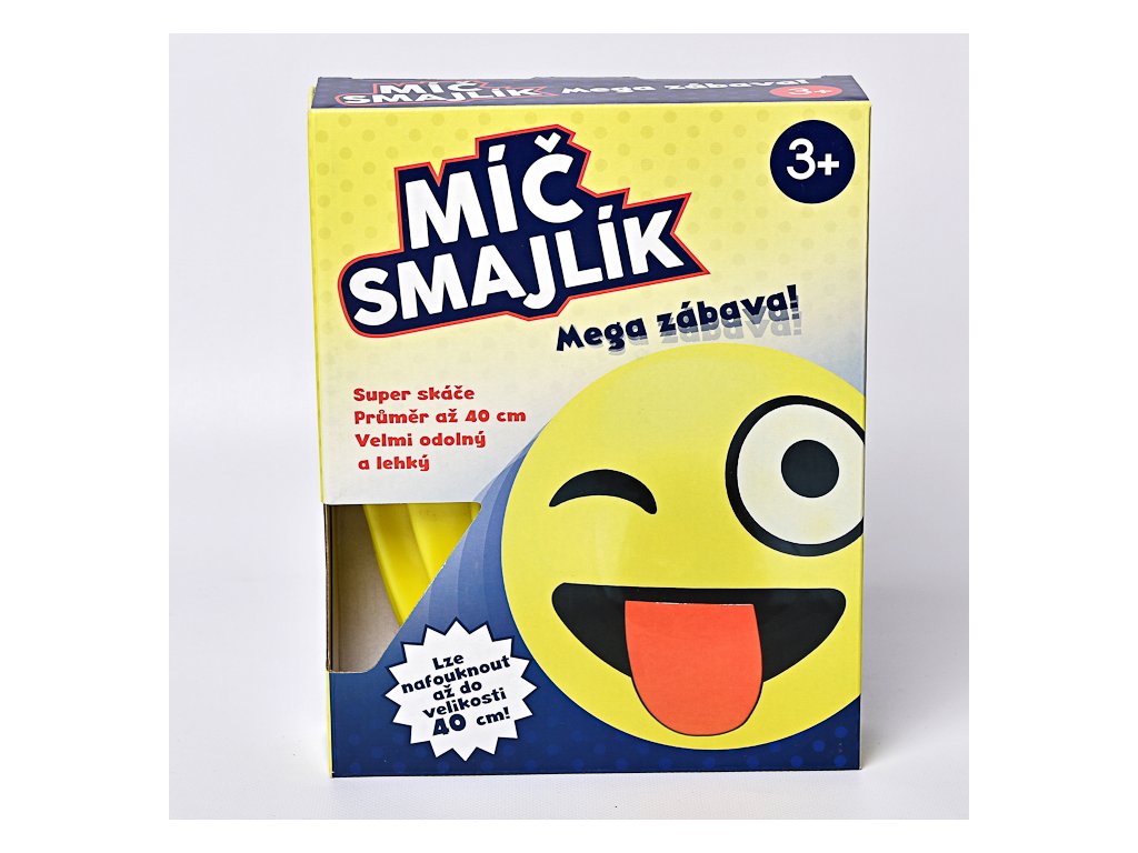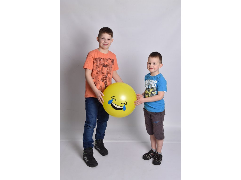 Velký nafukovací míč z pevného materiálu. Průměr 40 cm. Nafouknutí pomocí jehly. 2 druhy (2 obličeje).